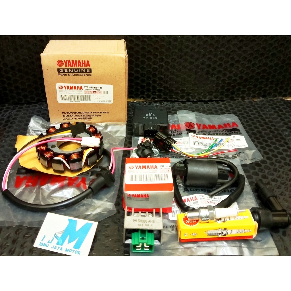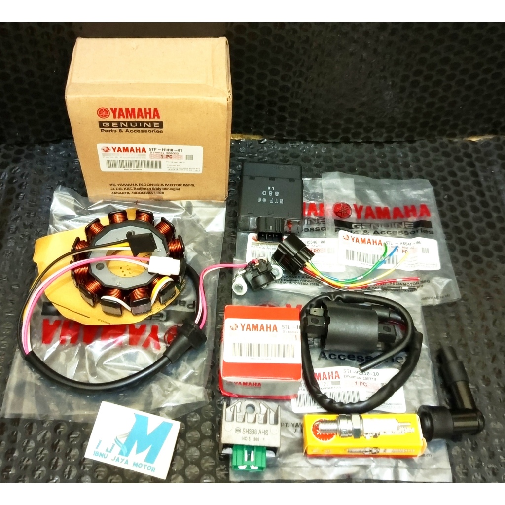Paket Pengapian 7 Item Spull spull ASSY set Vega R New Jupiter Z Old Jupiter Burhan 5TP Set Koil Coil + Cdi + Socket Cdi + Kiprok Regulator + Busi