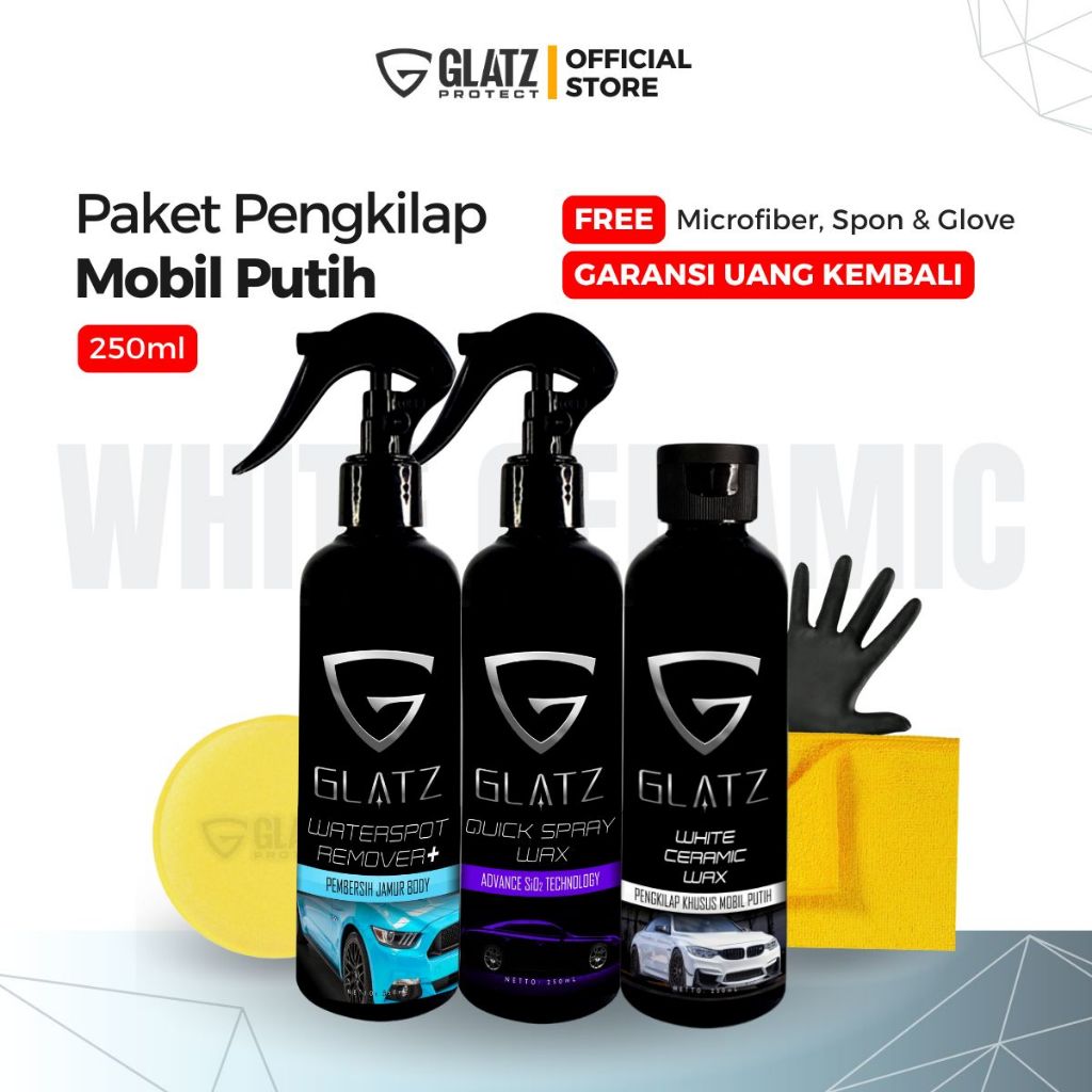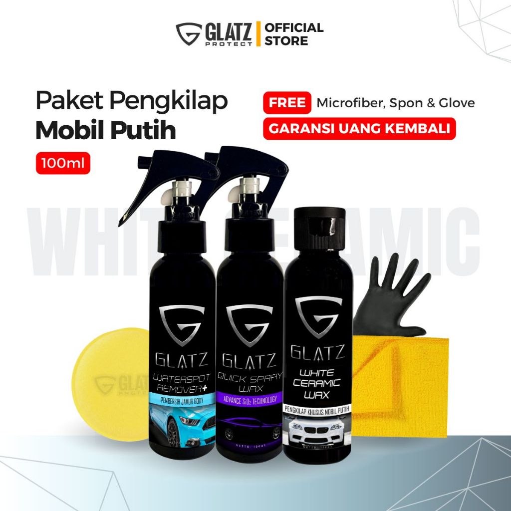 GLATZ PAKET PERAWATAN KHUSUS BODY MOBIL PUTIH White Ceramic Wax Penghilang Jamur Body Instan Coating