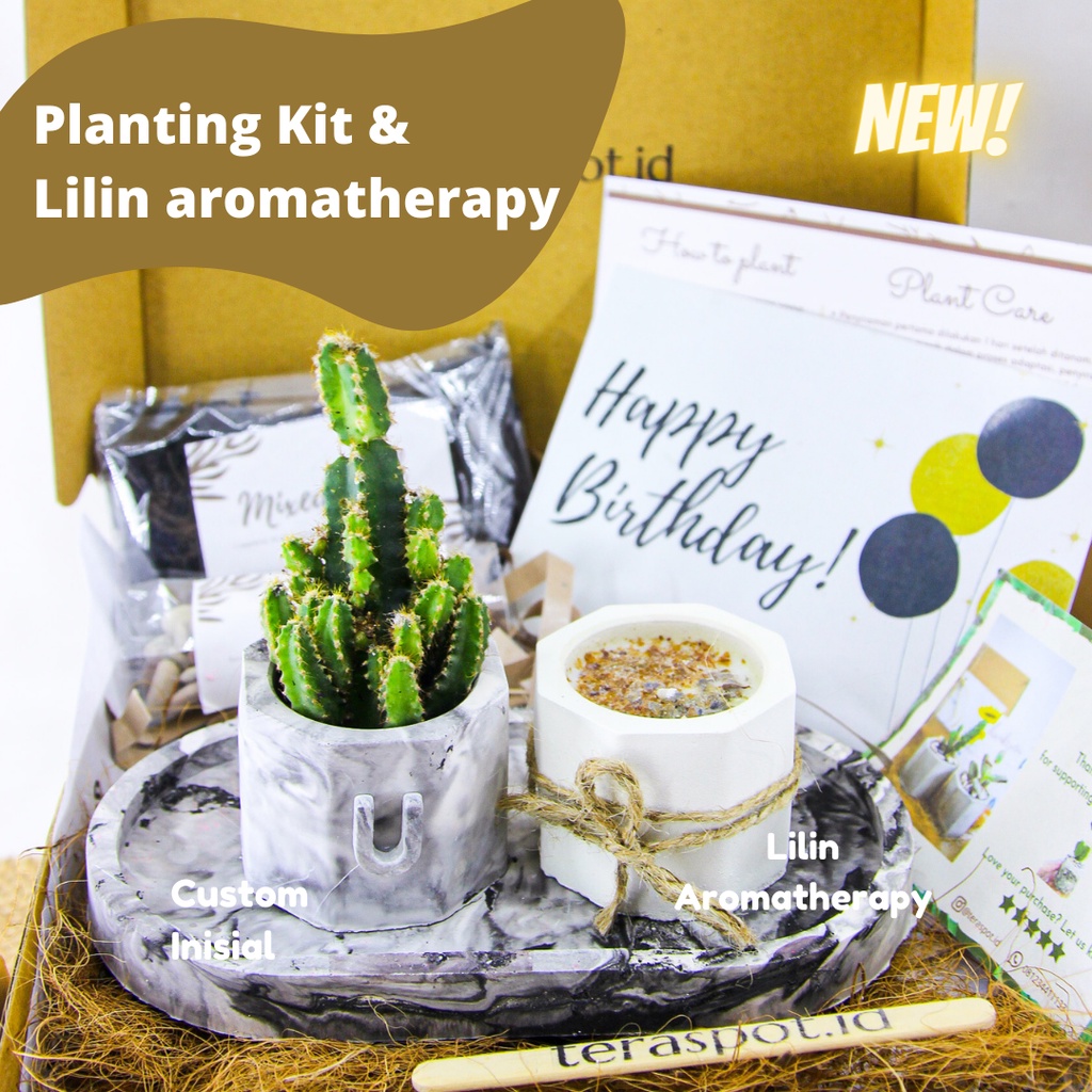 Paket Planting Kit Kaktus & Lilin Aromaterapi / Scented Candle Custom Gift Hampers Hadiah Souvenir