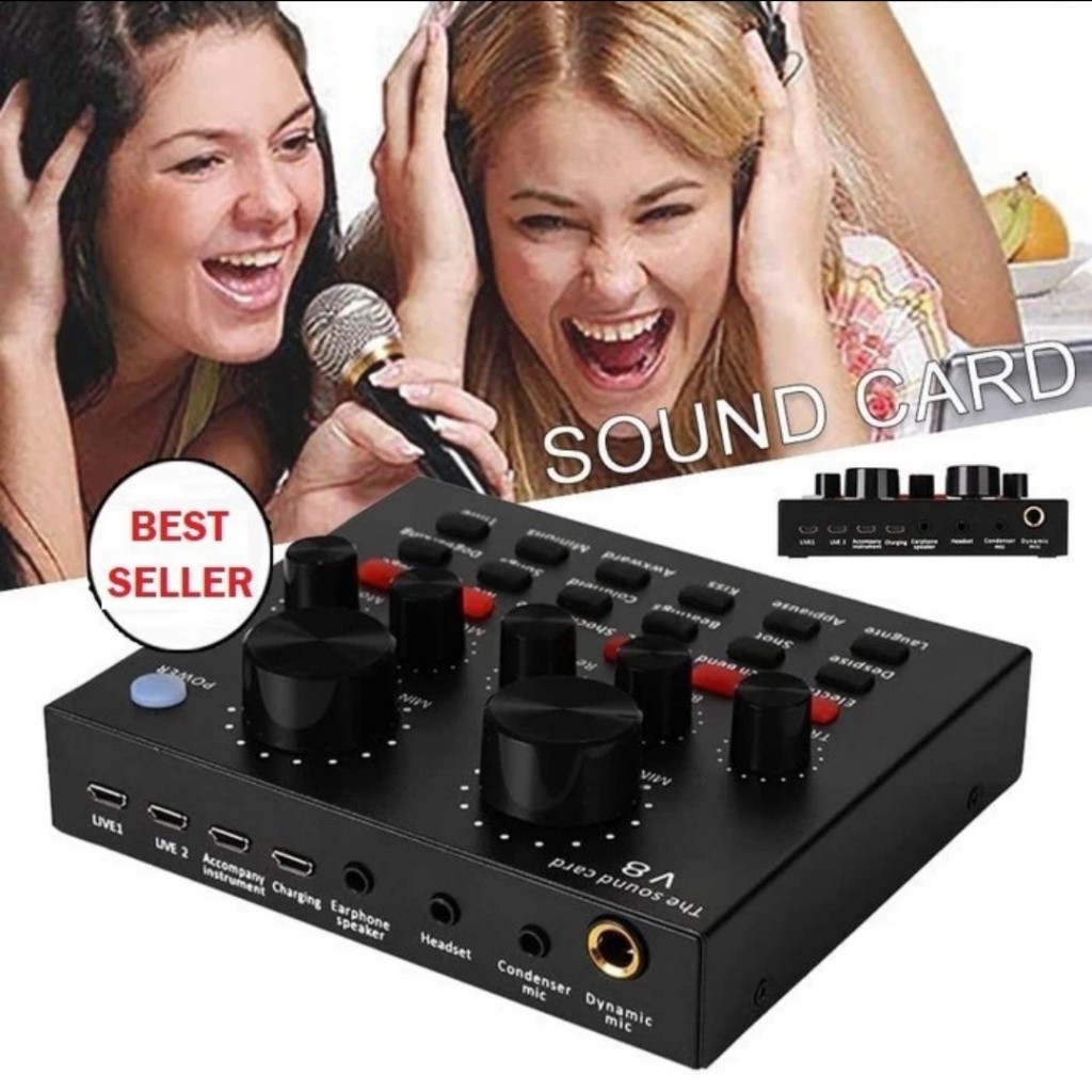 Paket Premium Soundcard V8 Mixer Bluetooth Sound card mic mikrophone advane set alat Audio Live Streaming Karaoke Tiktok Youtube