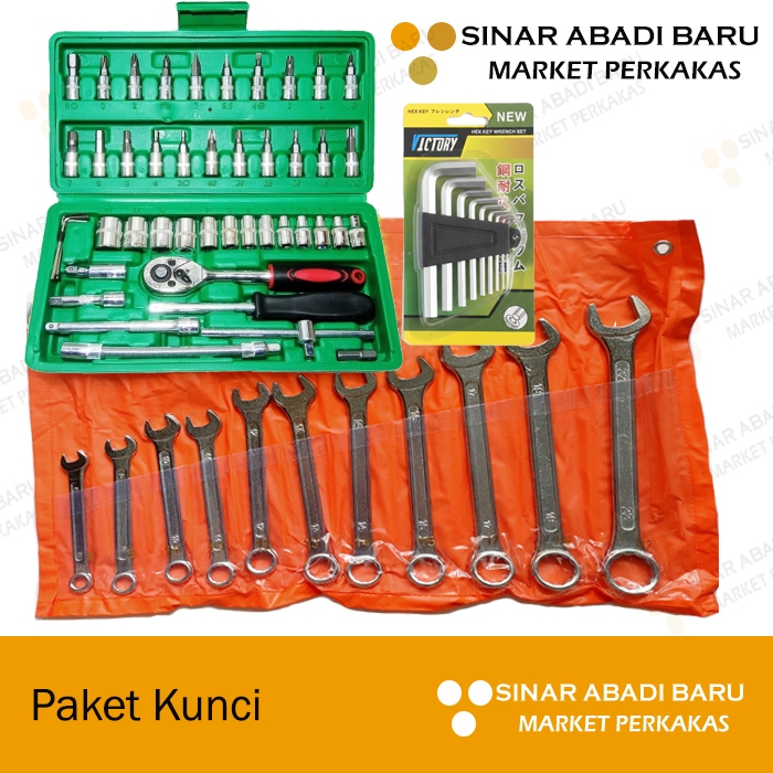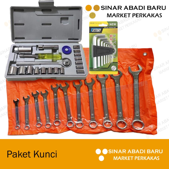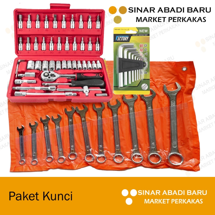 Paket Promo Tool Set Kunci Ring Pas Set 11 pcs + Kunci Sok 21 pcs + Kunci L 9 pcs