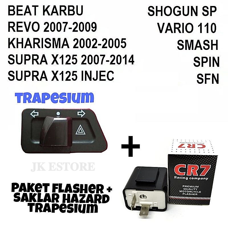 Paket Relay CR7 + Saklar Hazard / Saklar Trapesium Universal