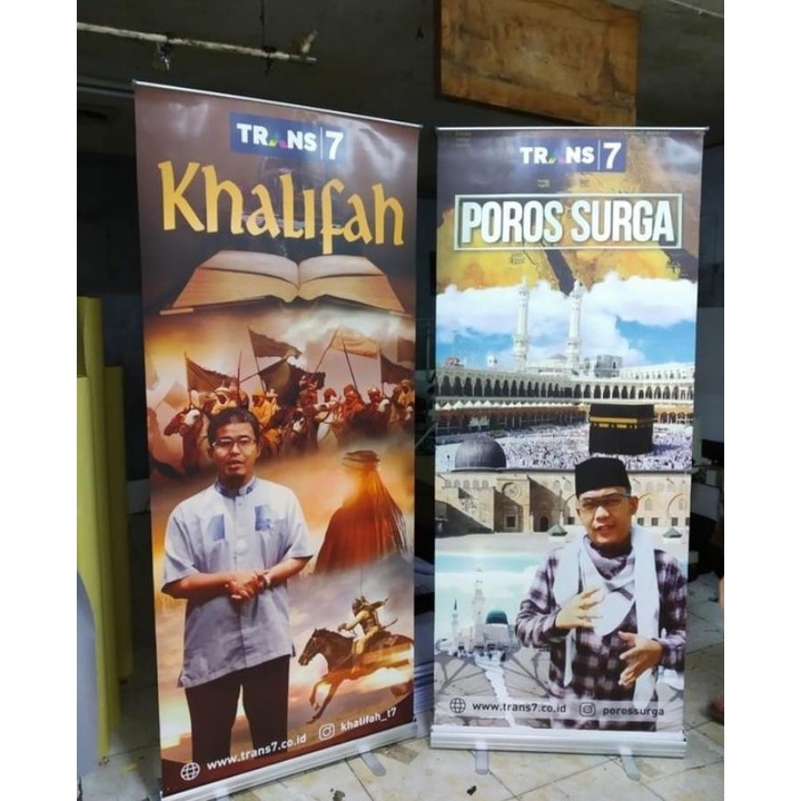 Paket Roll Up Banner Ukuran 80 x 200 cm Alumunium - Bahan Flexy 440 gr - CETAK OUTDOOR