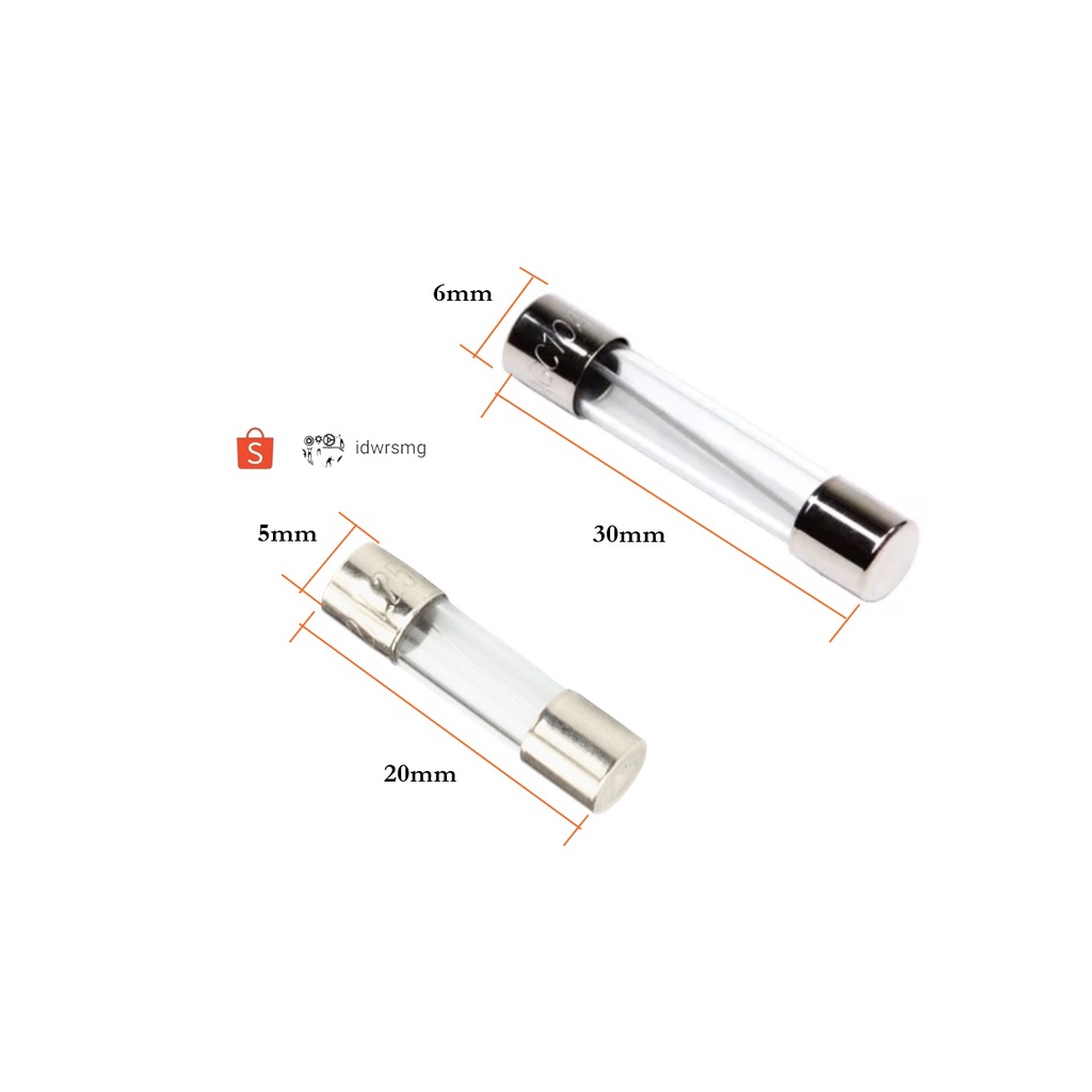 Paket Sekering Fuse Tube Fuse Box Fuse Kaca 5*20mm 6*30MM 250V 3A - 30A