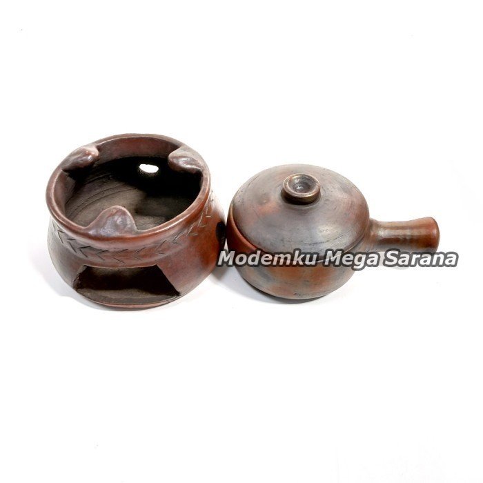 Paket Set Keren Anglo + Panci Teflon Tanah Liat Diameter 18 cm - Gerabah Alat Masak Tempat Saji Tradisional