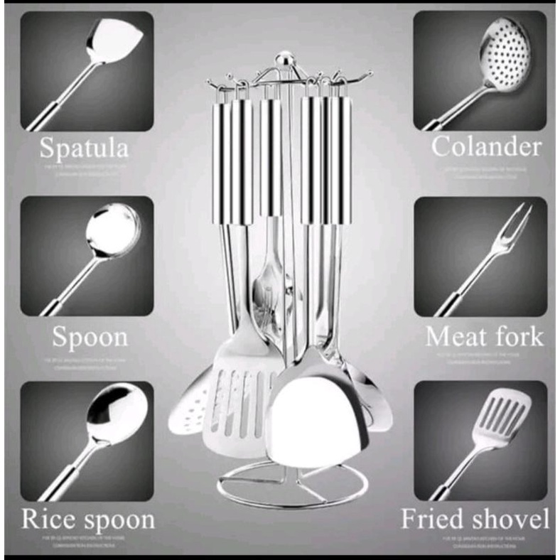 Paket Set Tool Spatula Alat Masak Dapur Rak 7Set Stenles Alat Masak - SODET SET/KITCHEN TOOL 7 PCS
