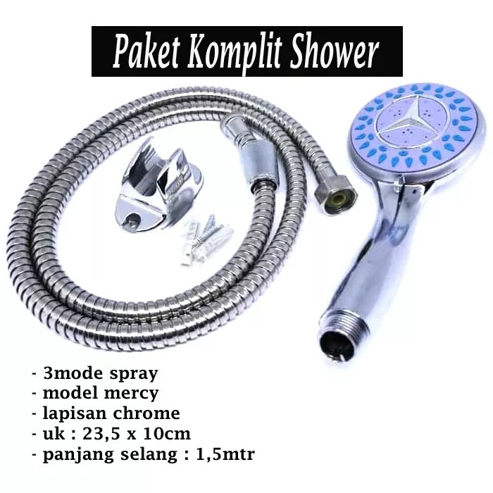 Paket Shower Mandi 3 Pengaturan Spray - Hand Shower Kamar Mandi Kepala Bulat High Quality -Shower 3 Mode Selang Shower Mandi High Quality Selang Shower 150cm