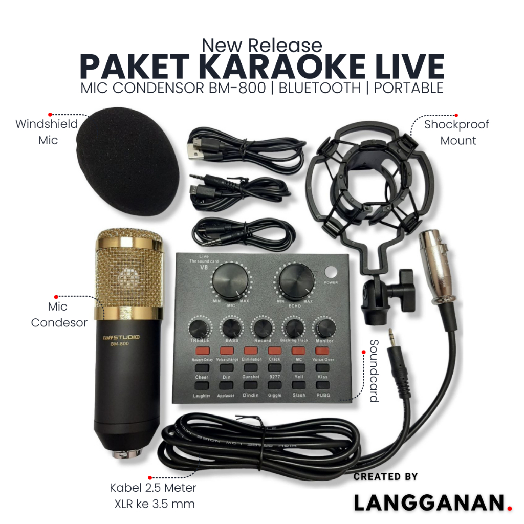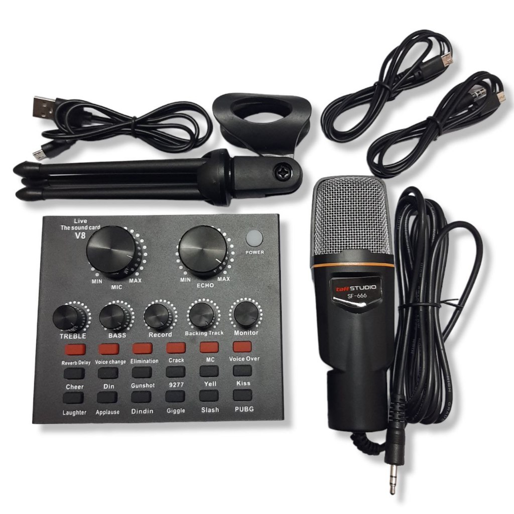 Paket Sound card V8 Bluetooth Audio Soundcard Live Streaming Karaoke Recording Plus Mic Kondensor BM-800