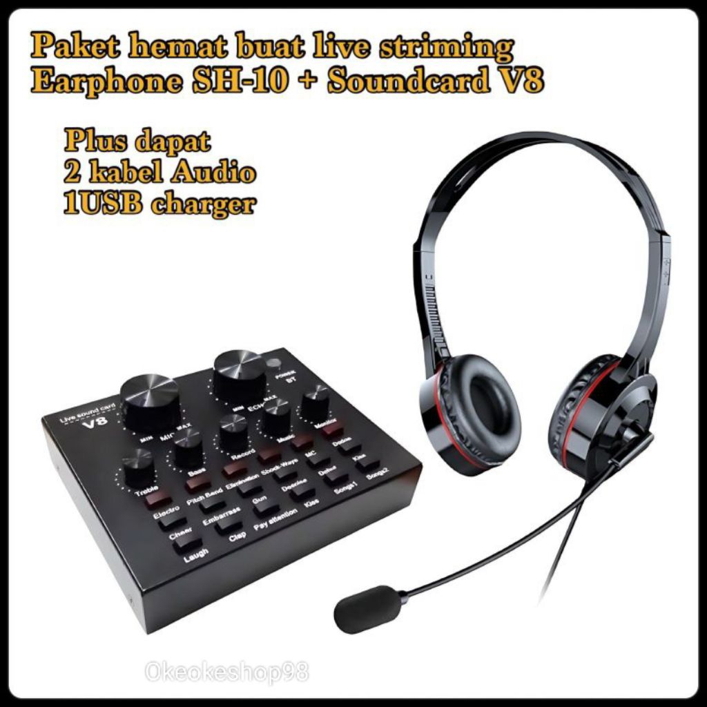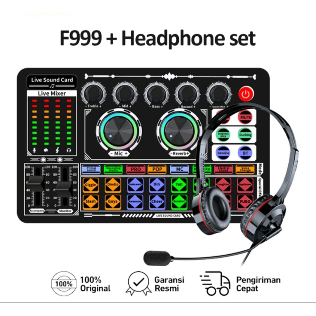 Kimiso F999+NX490 Set Paket Sound Card Plus Headphone Peralatan Alat Live Streaming atau Bernyanyi serta Karaoke