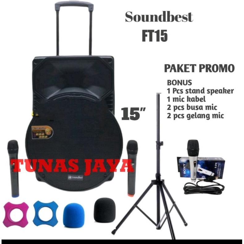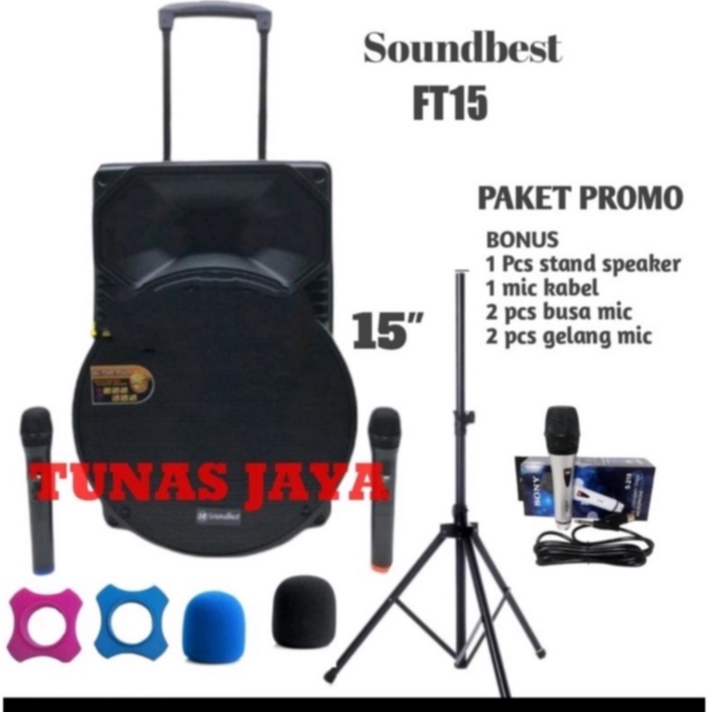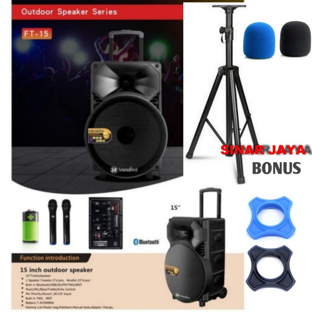 Paket Speaker Portable Wireless Soundbest FT 15 FT15 Original 15 inch Bluetooth FREE ACC ORIGINAL