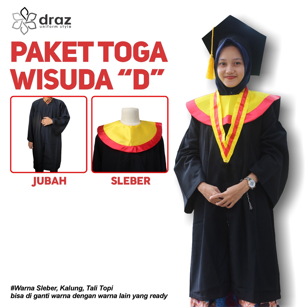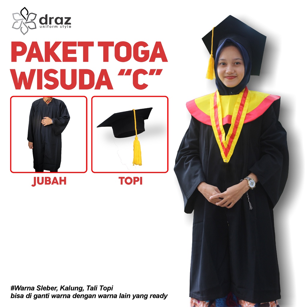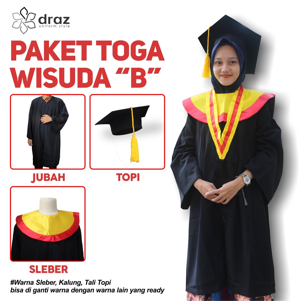 TOKODRAZ - Paket Toga Wisuda Dewasa Laki-laki Perempuan Lengkap Warna Sleber Samir Kuning Lis Merah