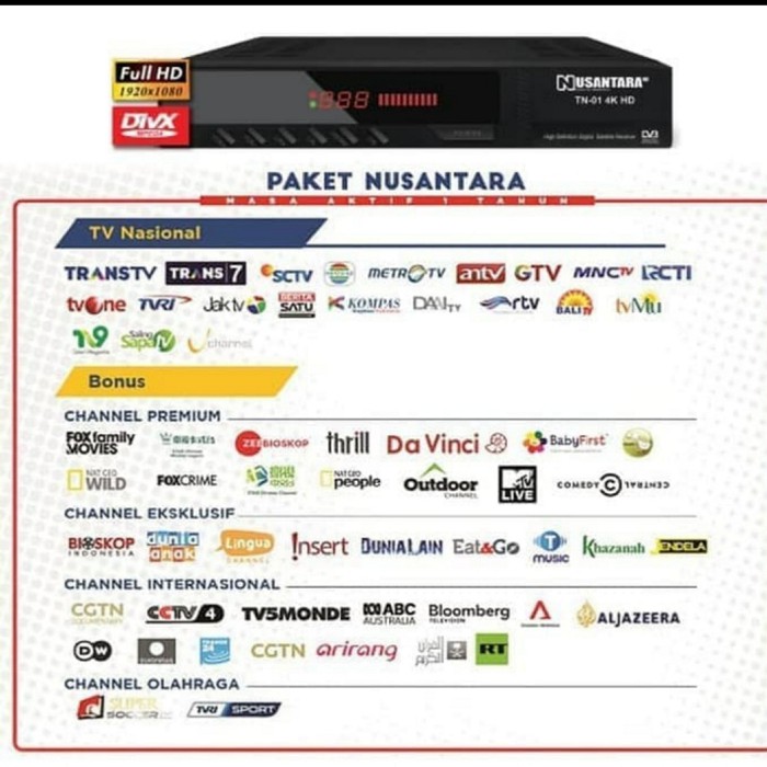 Paket Transvision Nusantara HD Plus Kabel dan LNB