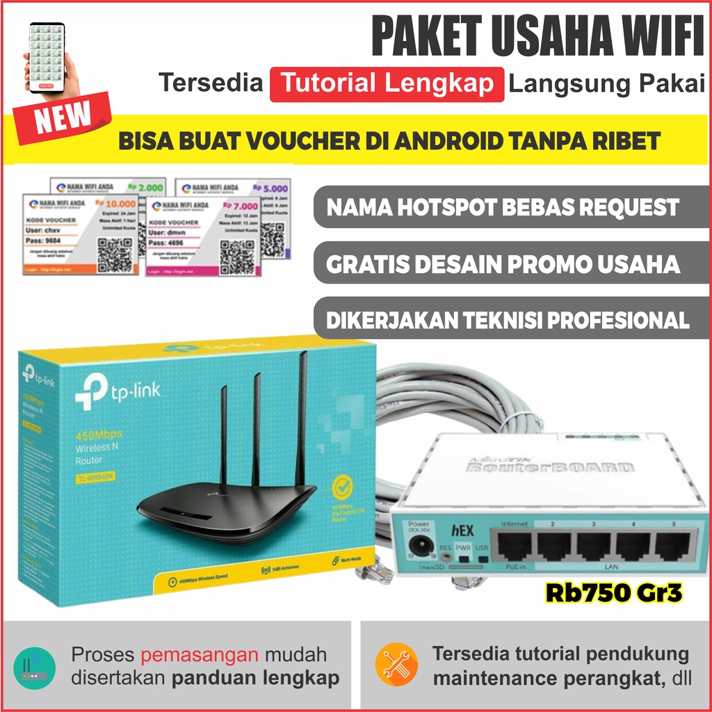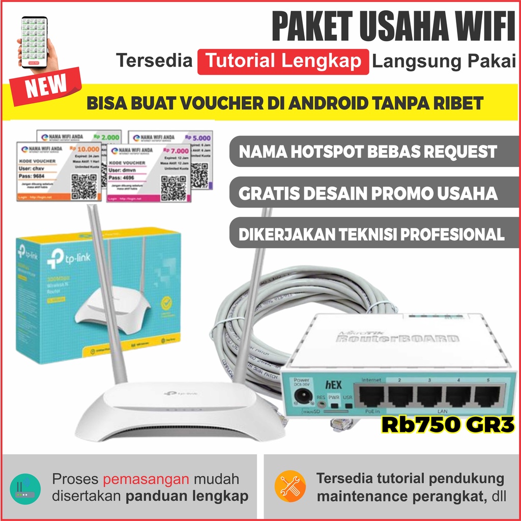 Paket Usaha Wifi Mikrotik RB750GR3 + Akses point indoor Full Setting Siap Pakai Sistem Billing