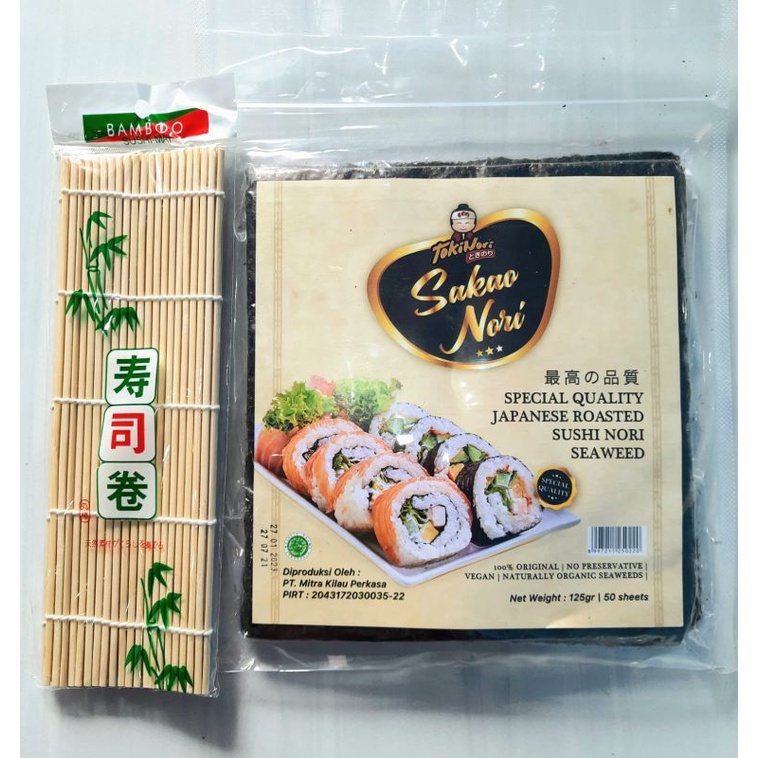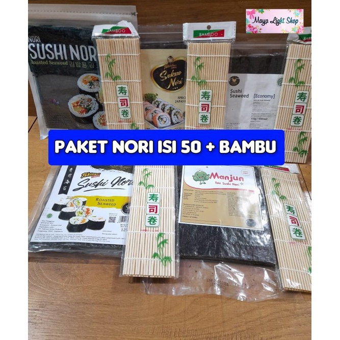 SALE Paket bahan sushi nori 50 lembar + bambu sushi 1 halal rumput laut seaweed sakao nori sushi sale