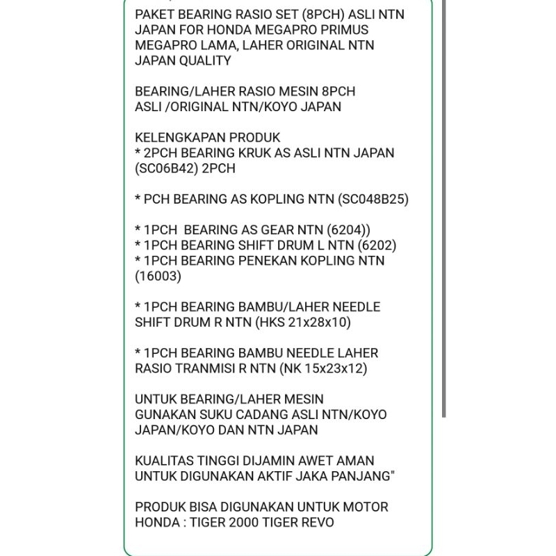 Paket bearing rasio SET 8PCH original NTN japan 100% Laher rasio mesin Tiger 2000 Tiger Revo