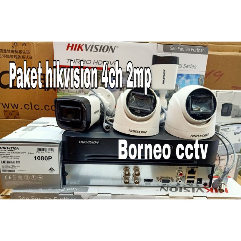 Paket cctv hikvision 4 channel 4 kamera 2mp colorvu + audio full hd 1080p tahan panas dan hujan full color camera bisa online di hp