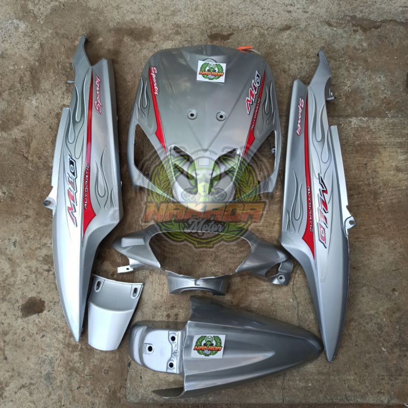 Paket cover dek body tameng full set halus Yamaha Mio Sporty plus sticker warna silver berkualitas mirip ori original tameng bok bodi panel tebeng kempol kempolan fulset ful set alus halus mio sporti sporty