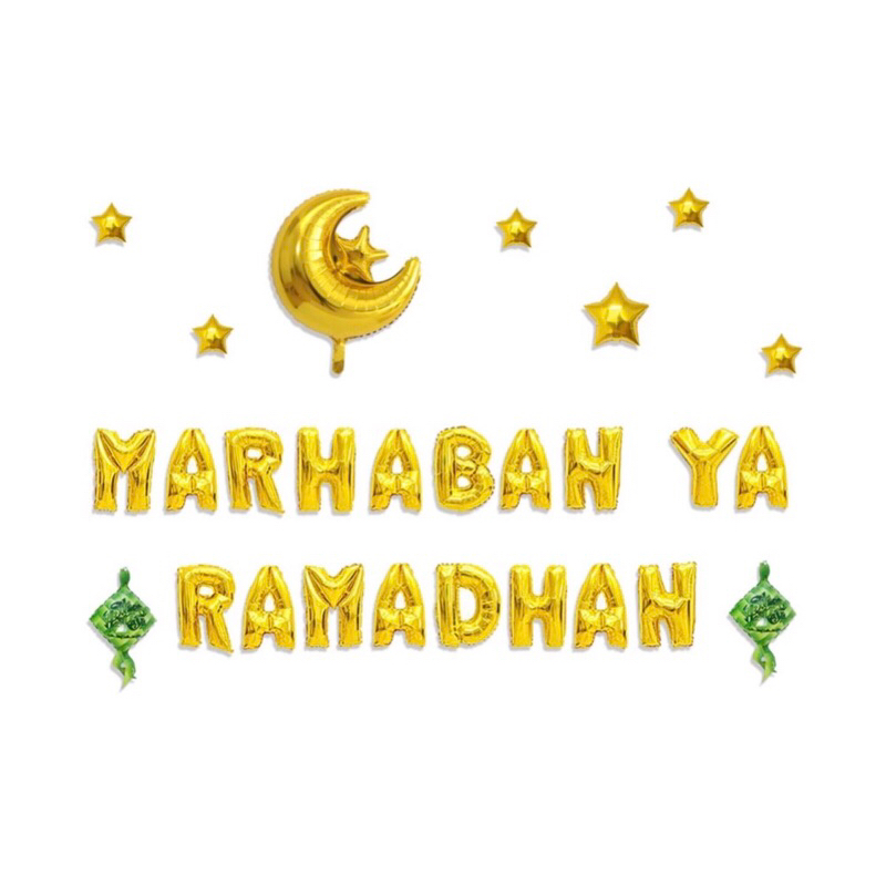 Paket dekorasi Ramadhan 1 balon tulisan marhaban ya ramadhan warna gold silver ramadan