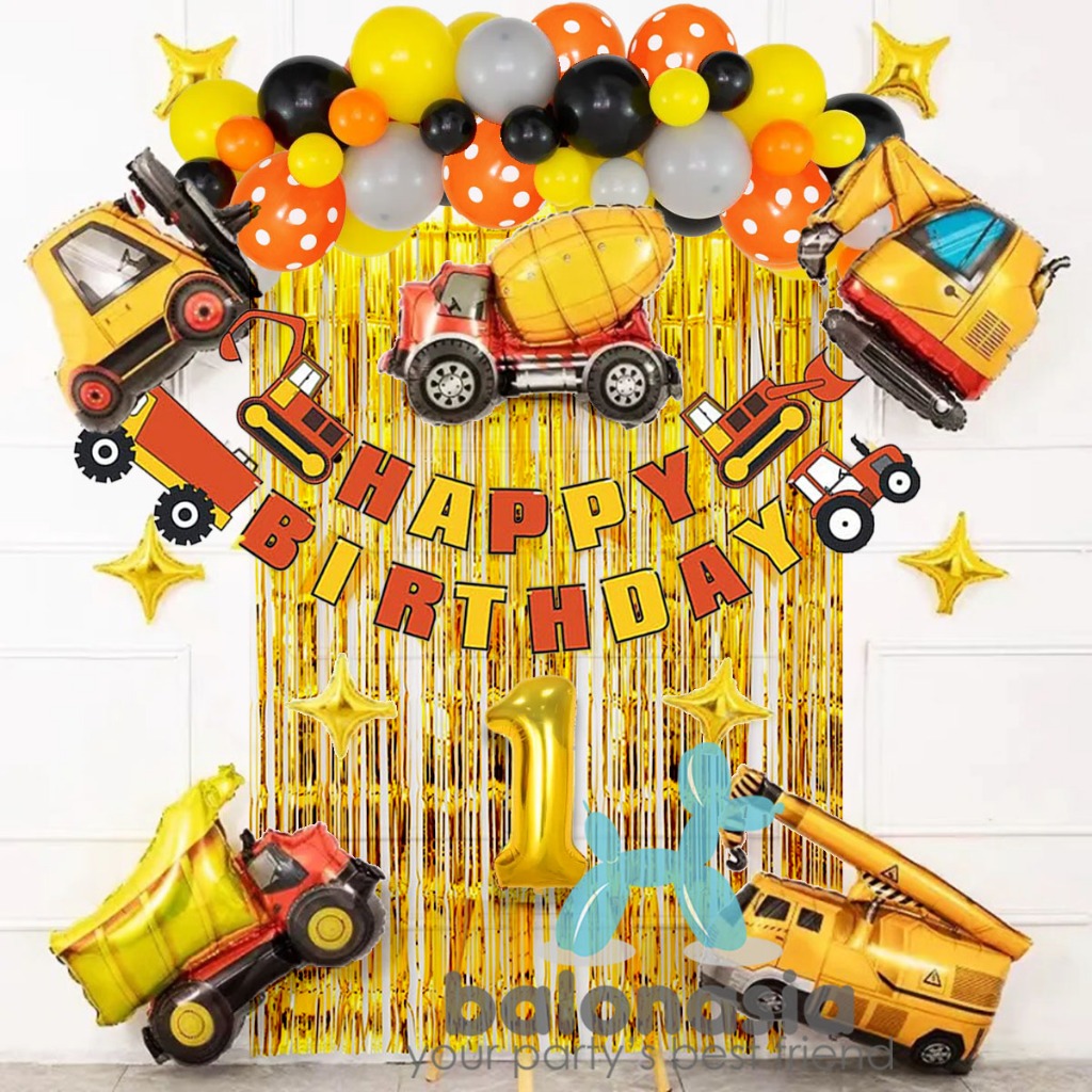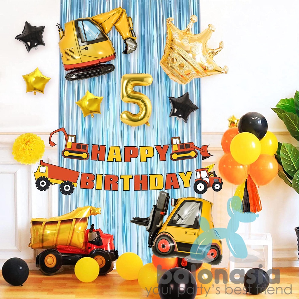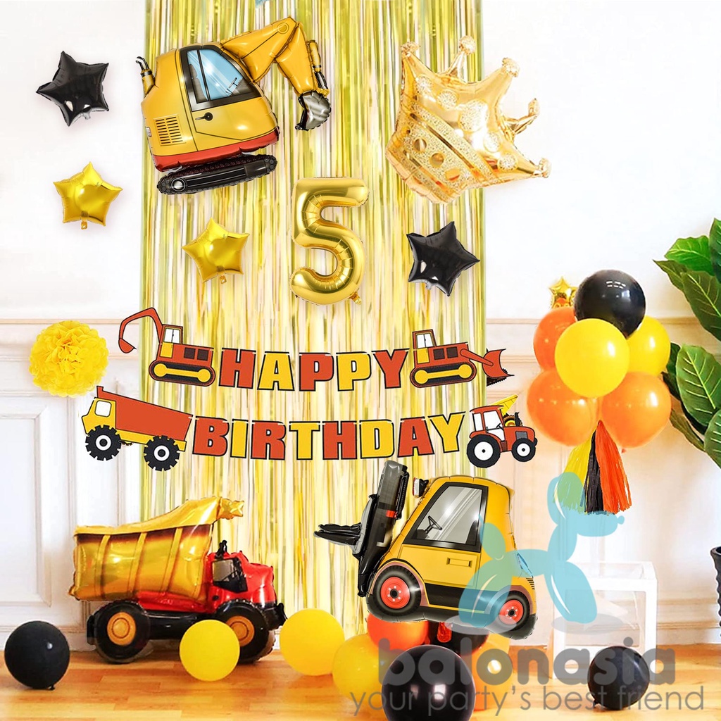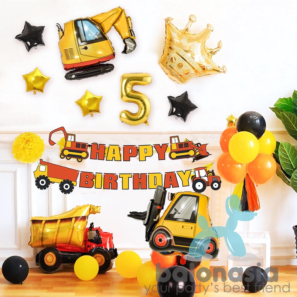 Paket dekorasi konstruksi excavator ulang tahun anak