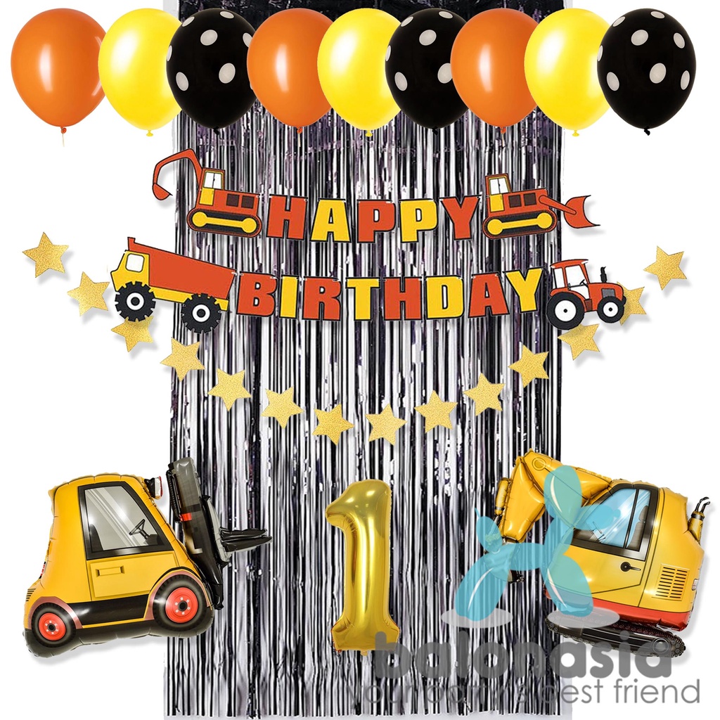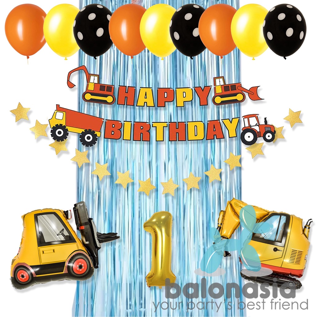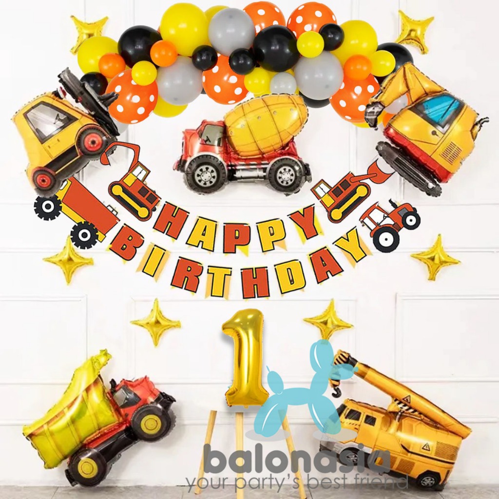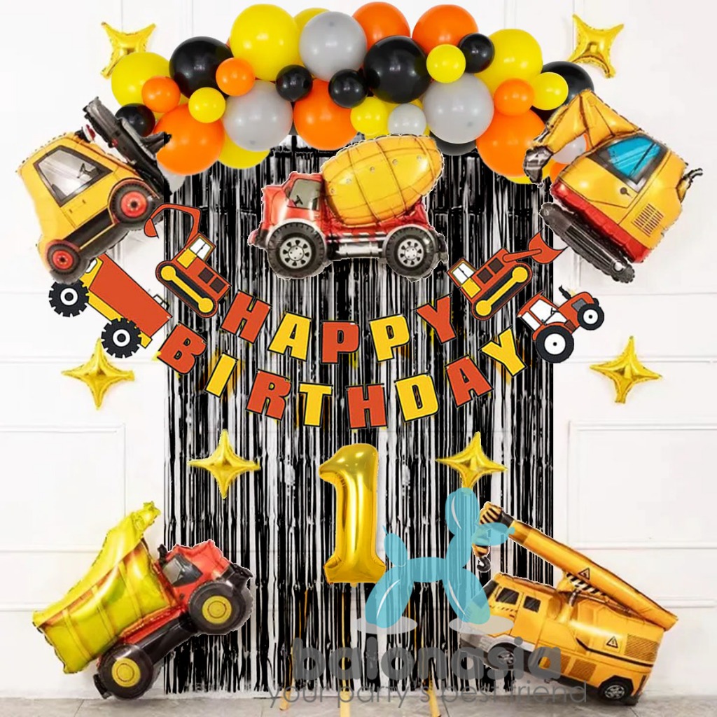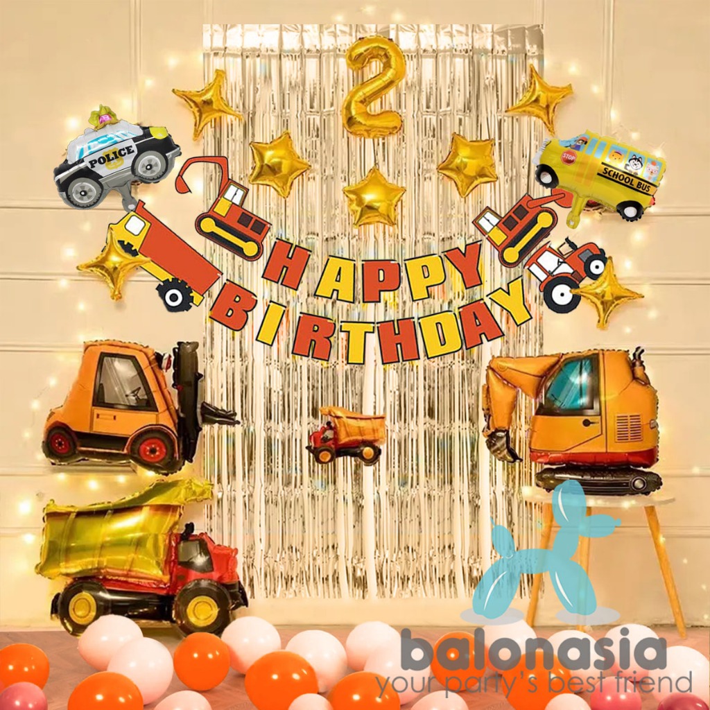 Paket dekorasi konstruksi excavator ulang tahun anak