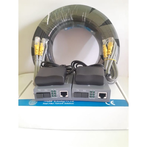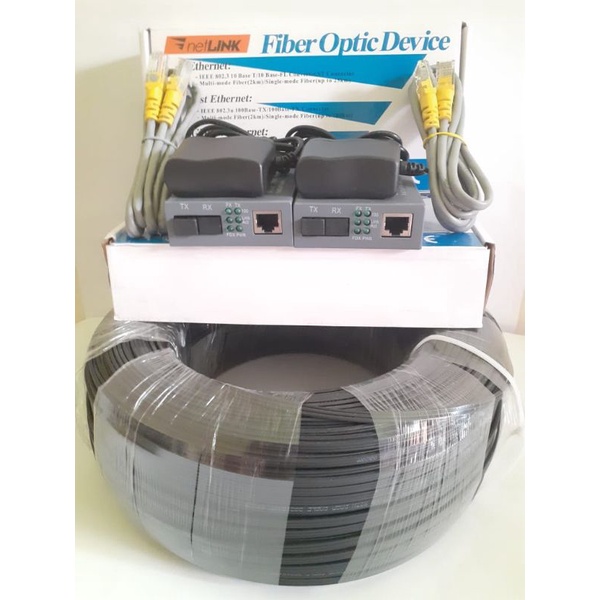 Paket kabel fiber optik Fo precon drop core sc upc ftth 350 meter dan sepasang netlink htb3100 AB