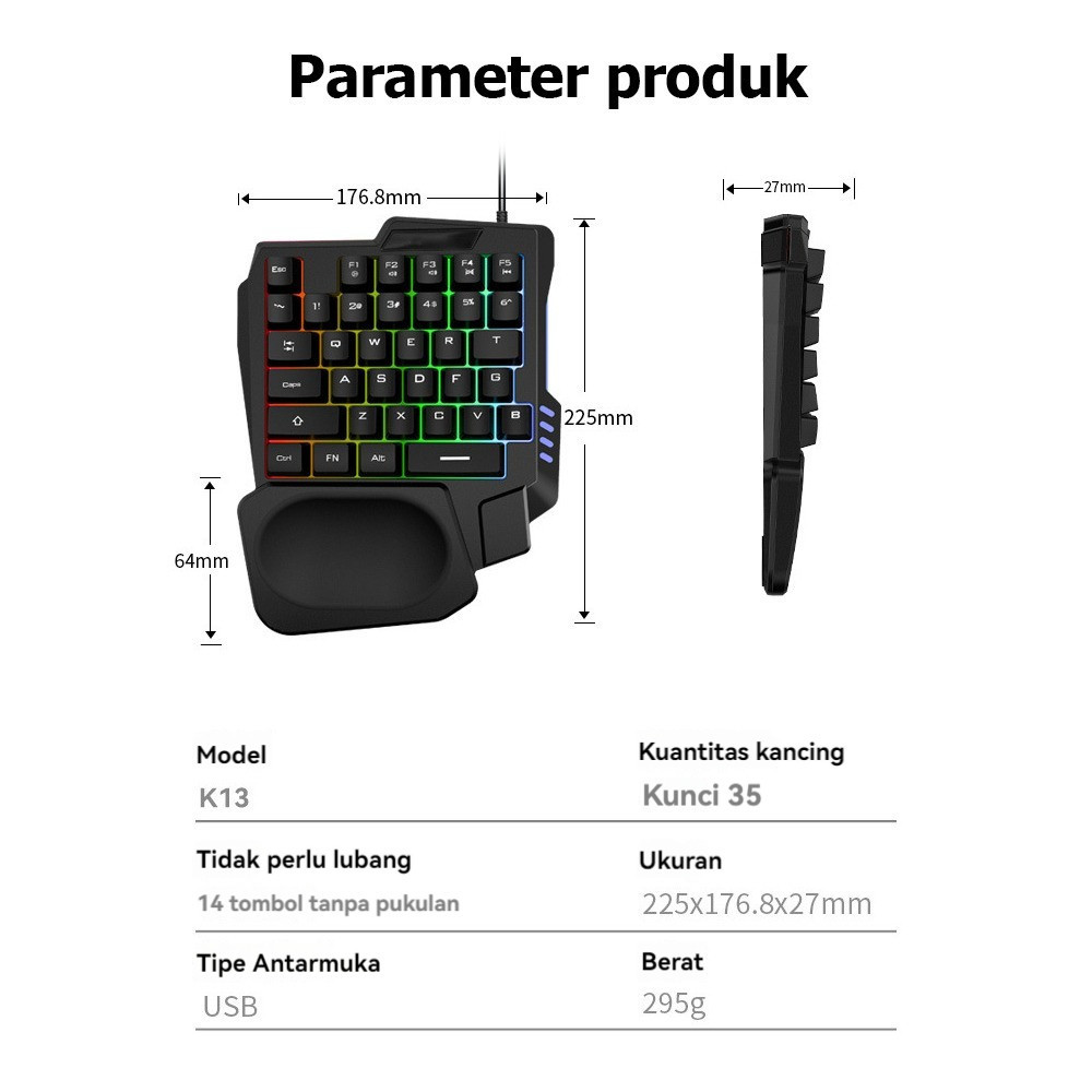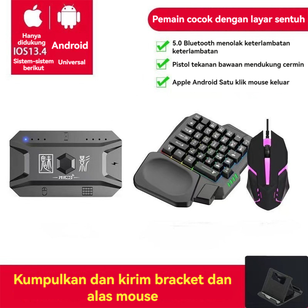 Paket keyboard gaming dan Mouse/Single Hand Gaming RGB Keyboard dan mouse PUBG keyboard gamin USB 5.0 Converter Wired Handheld Game