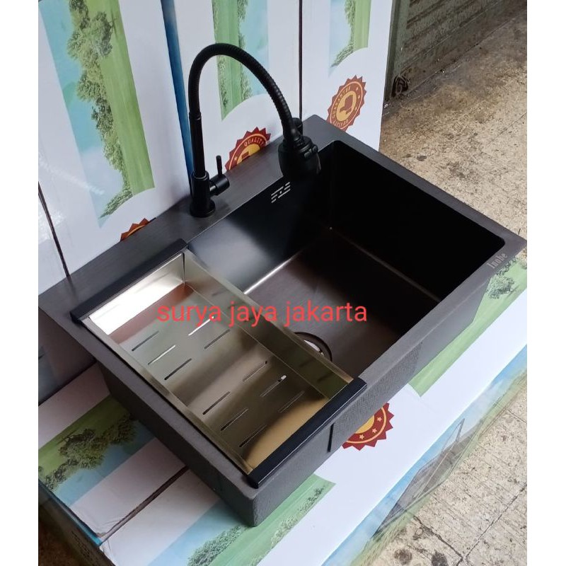 Paket kitchen sink kotak minimalis stainless hitam INOBE 6045 " ANTI GORES " / kitchen sink stainless hitam 6045
