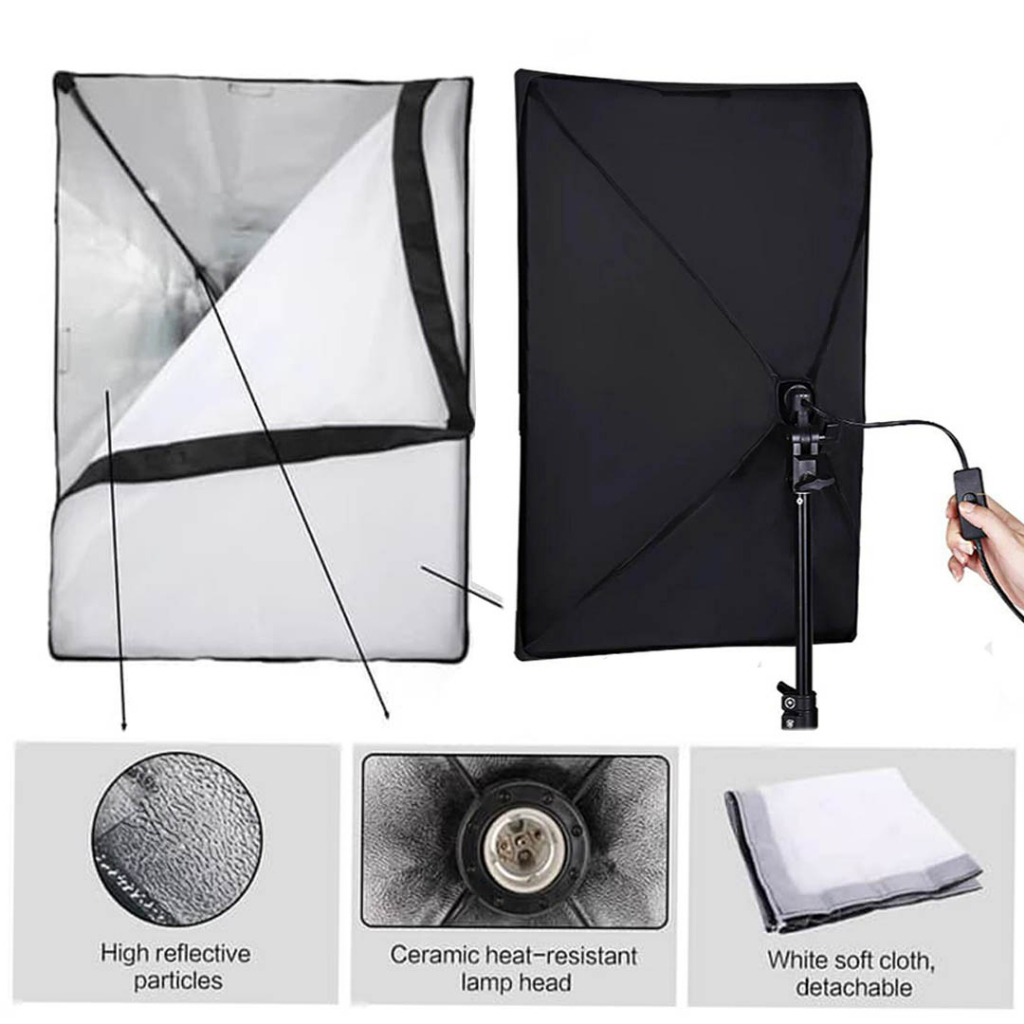 Paket lighning studio softbox set Lengkap Backdrop Background Foto Studio dengan bracket free tripod kamera dslr/ mirrorless/ hp