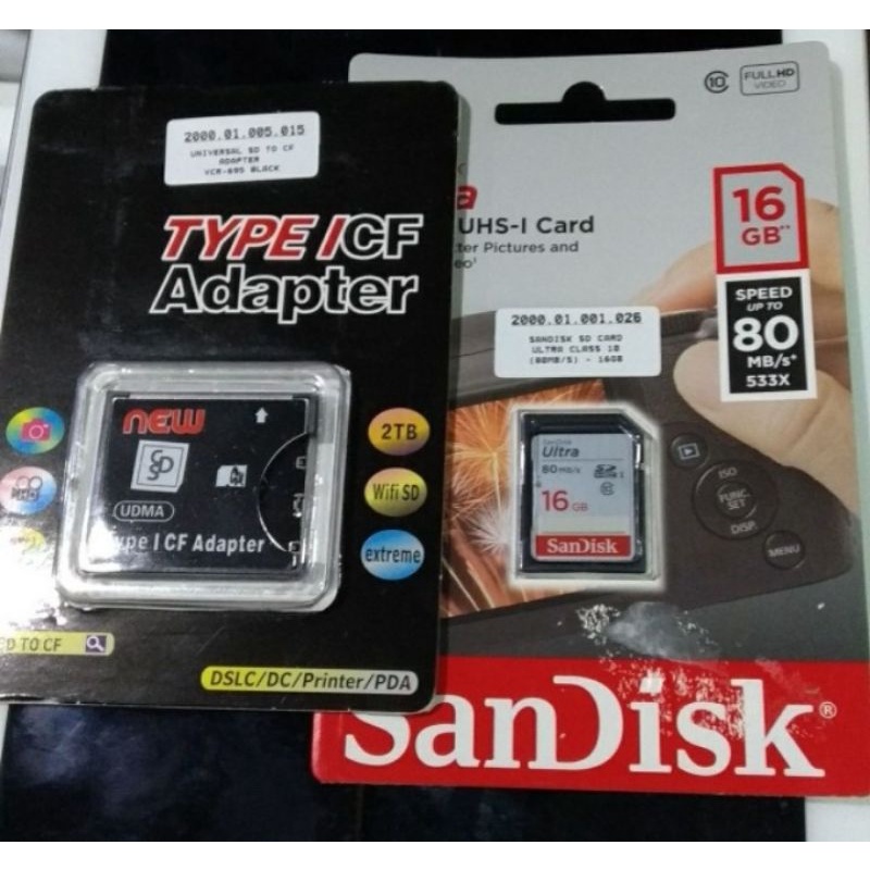 Paket memory card sandisk Compact Flash card CF ultra 16GB (adapter+sd card) kartu memory kartu memori cf memori sandisk original murah
