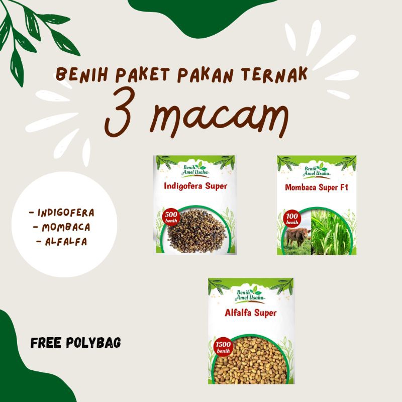 Paket pakan ternak 3 macam/benih pakan ternak Indigofera super/benih pakan ternak Mombaca super f1/benih pakan ternak Alfalfa super