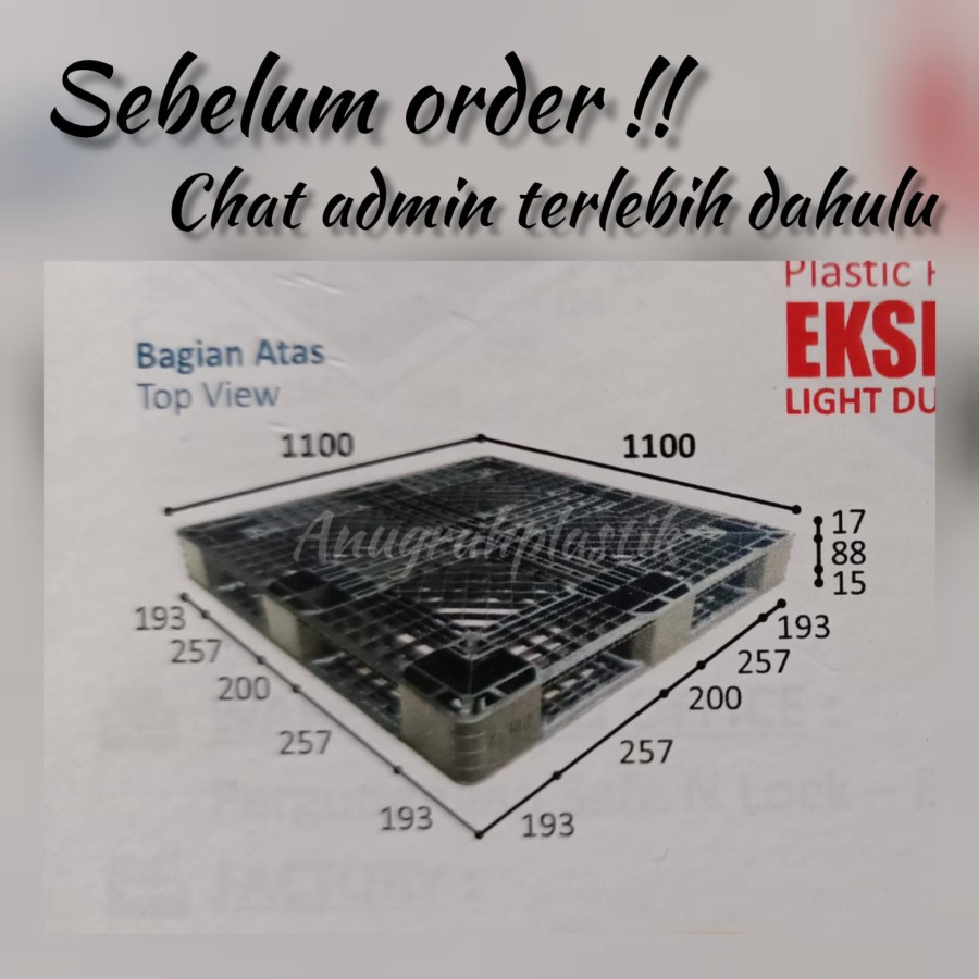 Pallet Plastik Baru (NEW) Hitam uk 110 x 110 x 12 cm Alas beban Static, Dinamic & Rak