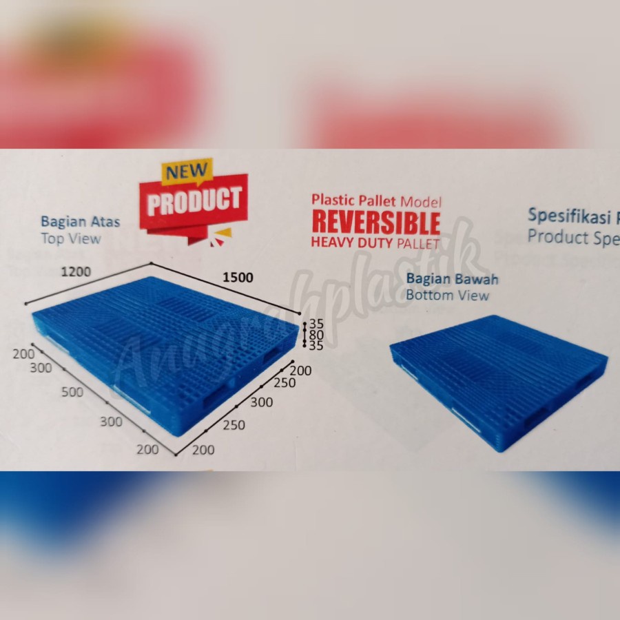 Pallet Plastik Baru (NEW) Warna Biru MQ uk 150 x 120 x 15 cm alas beban Static, Dinamic & Rak ( Palet plastik)