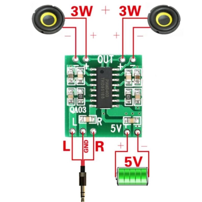 Pam8403 modul amplifier mini 2 X3 Watt tegangan 5 volt cocok untuk DIY