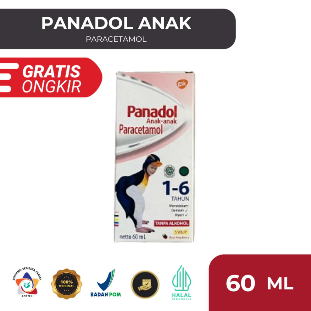 Panadol Anak Sirup Rasa Raspberry untuk 1-6 Tahun 60ml