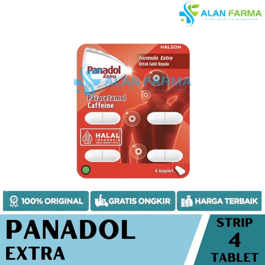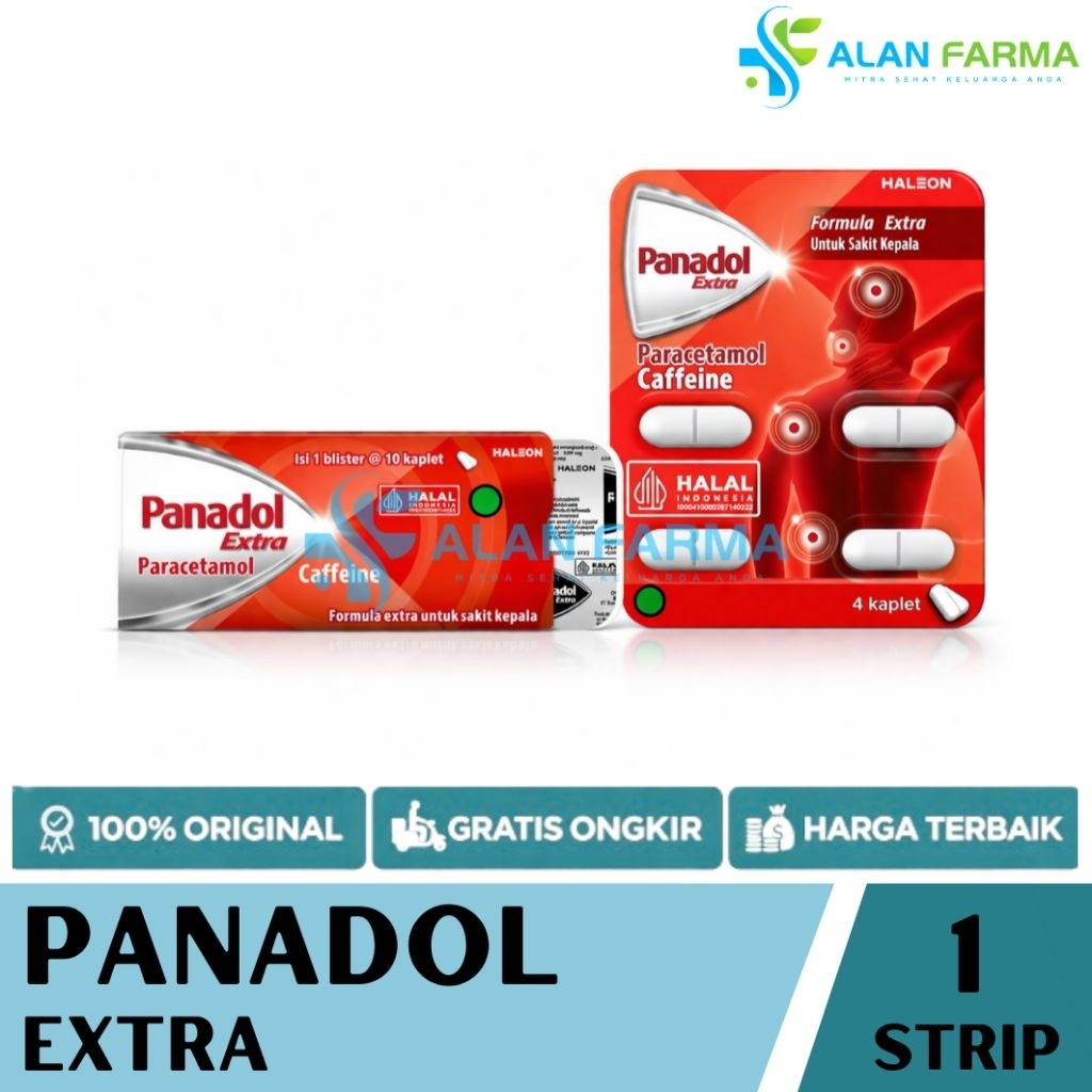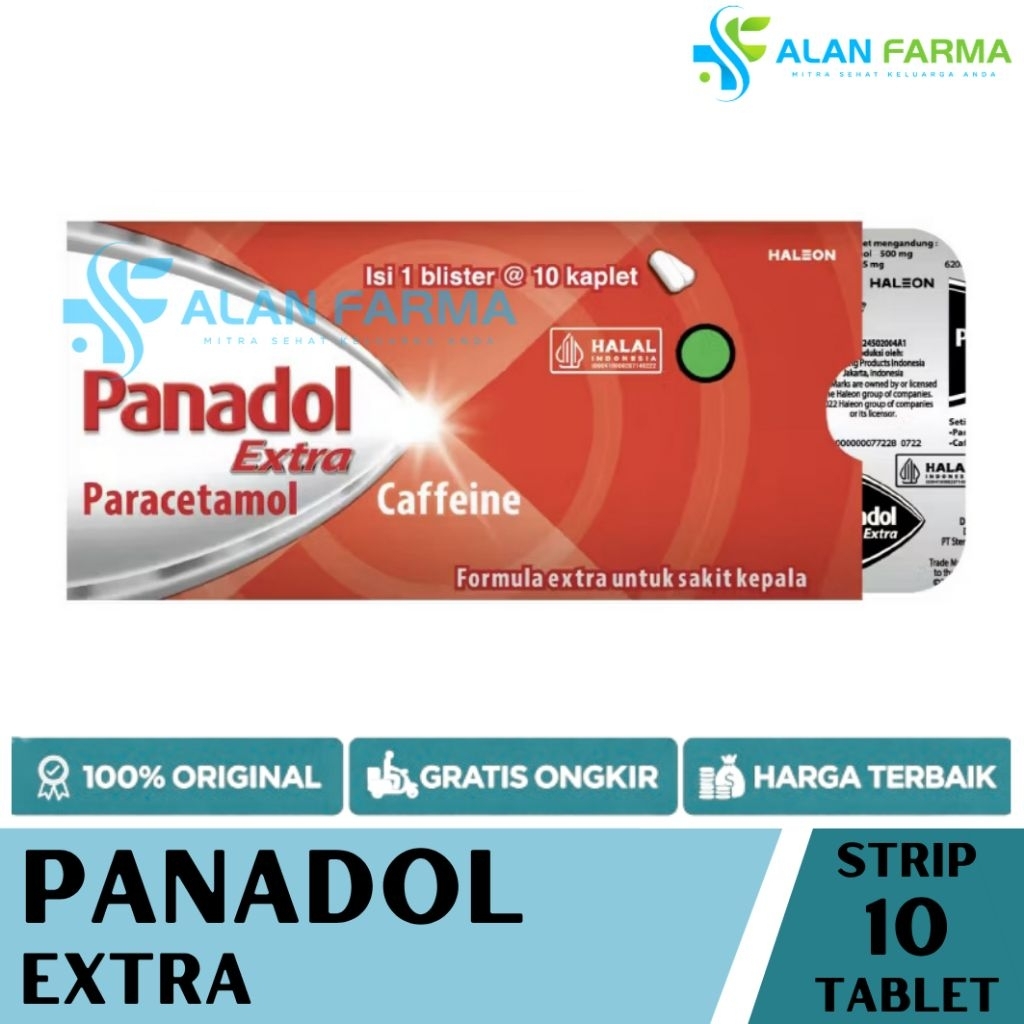 Panadol Extra Strip isi 4 Tablet dan 10 Tablet | Panadol Merah