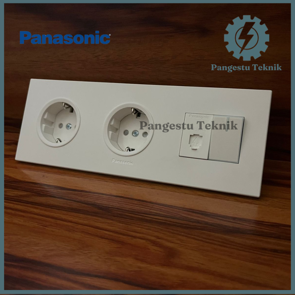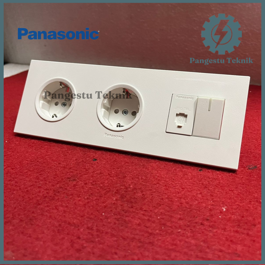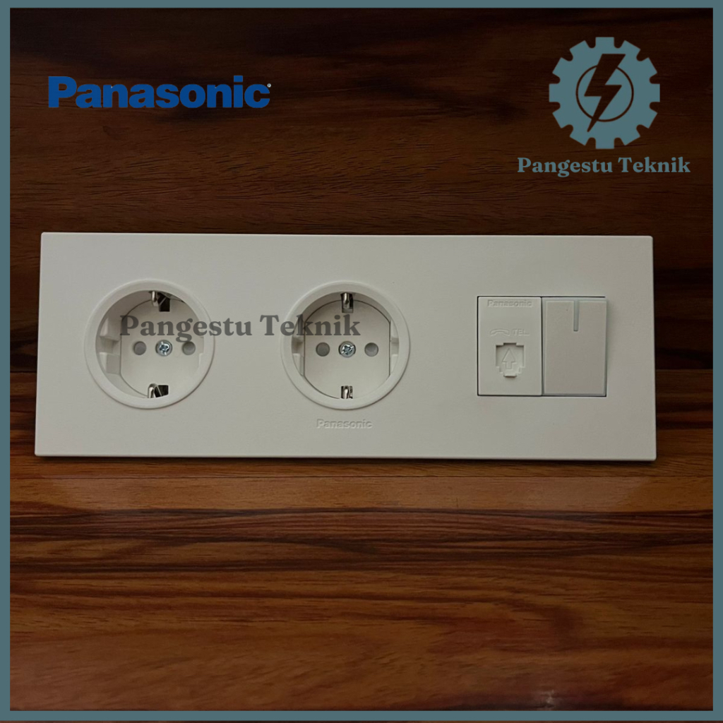 Panasonic Double Stop Kontak + Modul Telepon + Saklar Tunggal / Dua Stop Kontak + Modul Telepon + Saklar Universal Panasonic Style White Series (SW-3F-DSK-ST-TP)