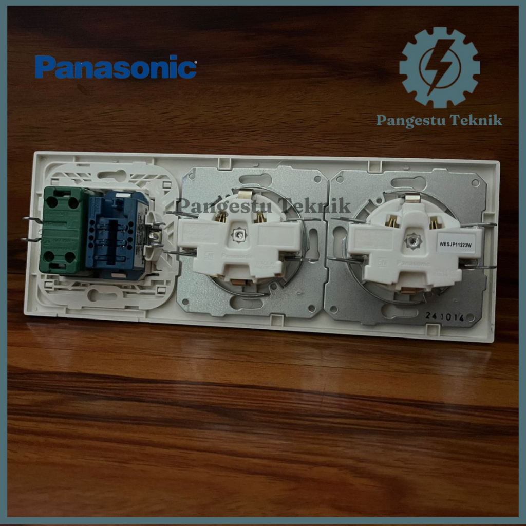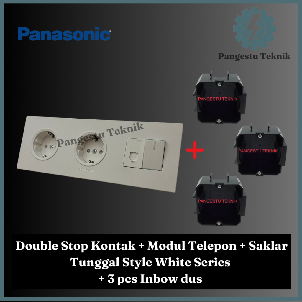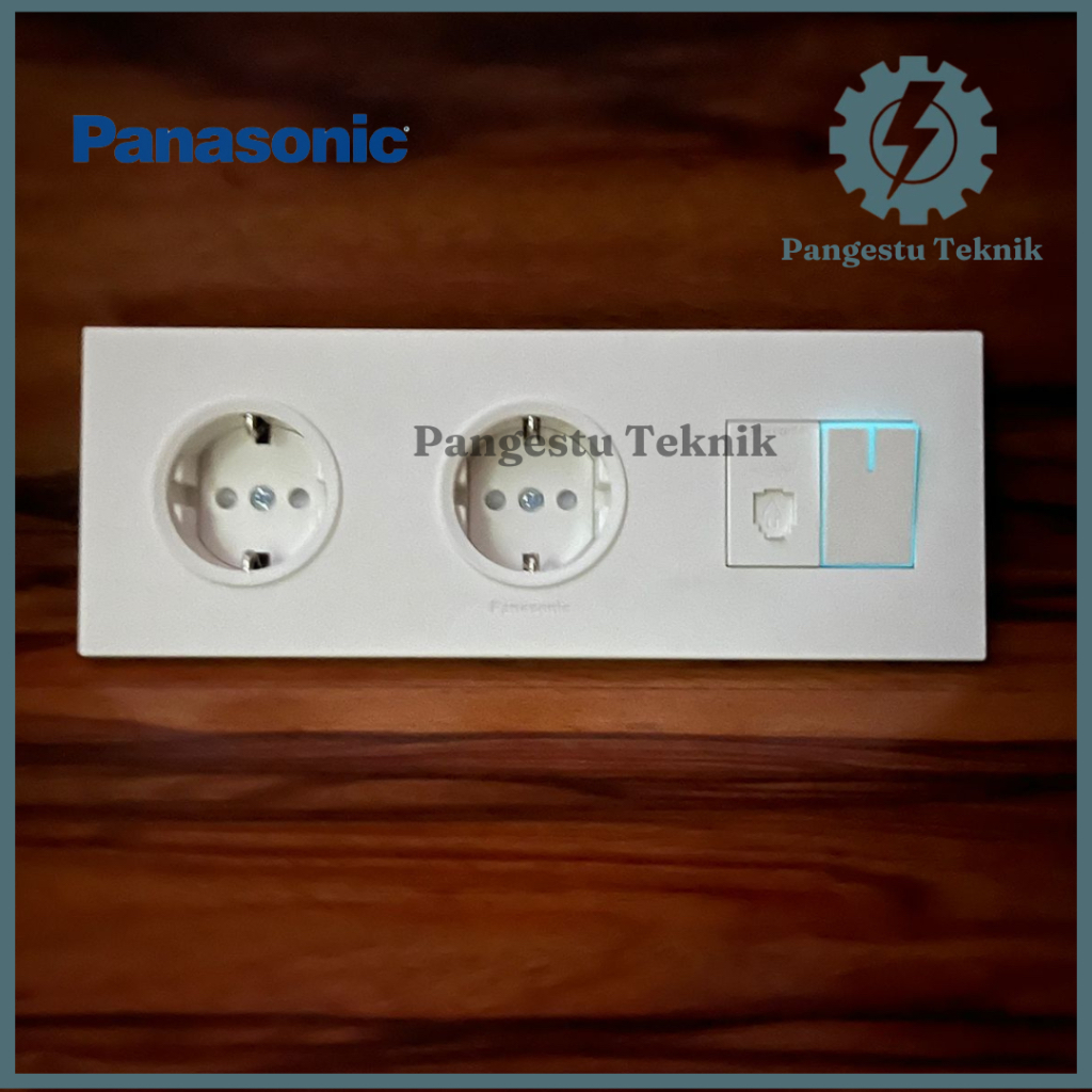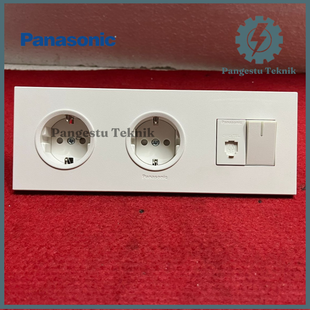 Panasonic Double Stop Kontak + Modul Telepon + Saklar Tunggal / Dua Stop Kontak + Modul Telepon + Saklar Universal Panasonic Style White Series (SW-3F-DSK-ST-TP)