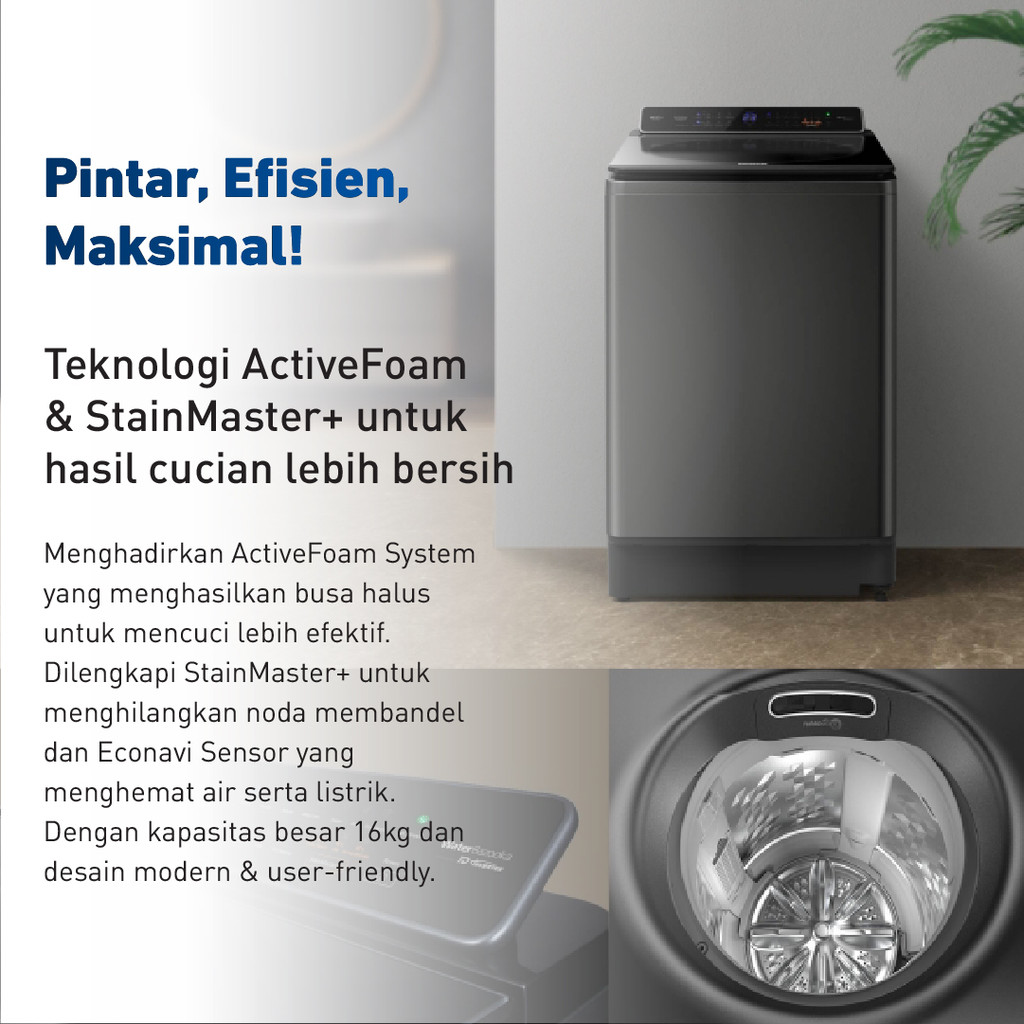 Panasonic NA-FD16V1BSG Mesin Cuci Inverter Top Load [16 Kg] - Black