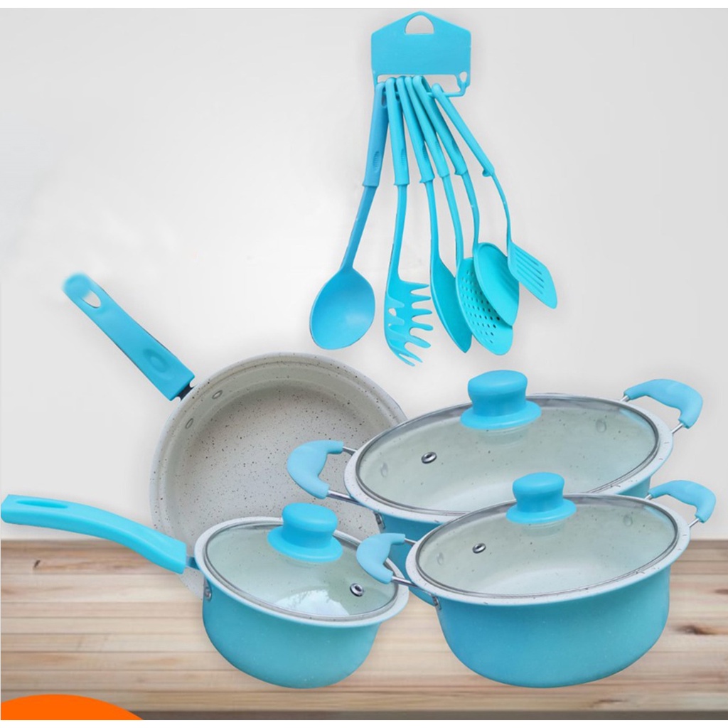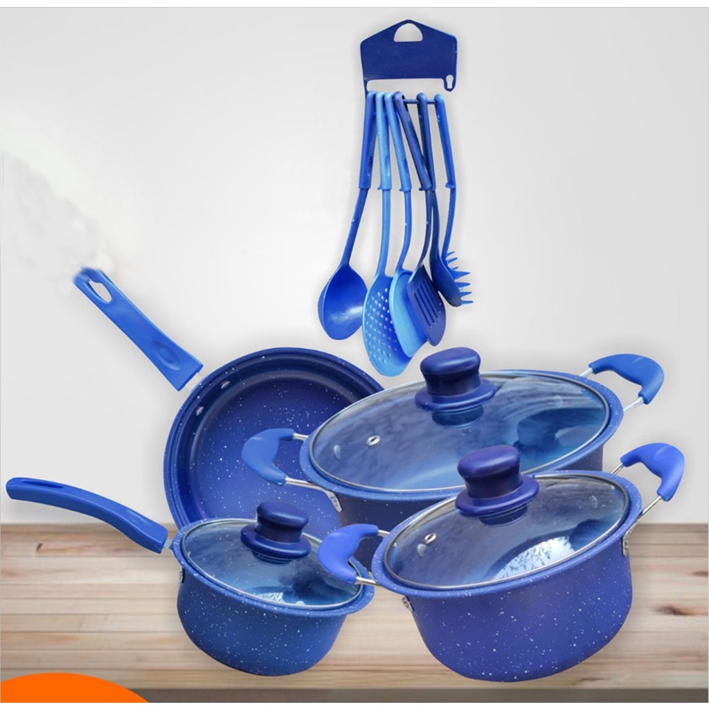 Panci 13 set Cookware Panci Set Anti Lengket Panci Set Tutup Kaca free Spatula homedekorationshop