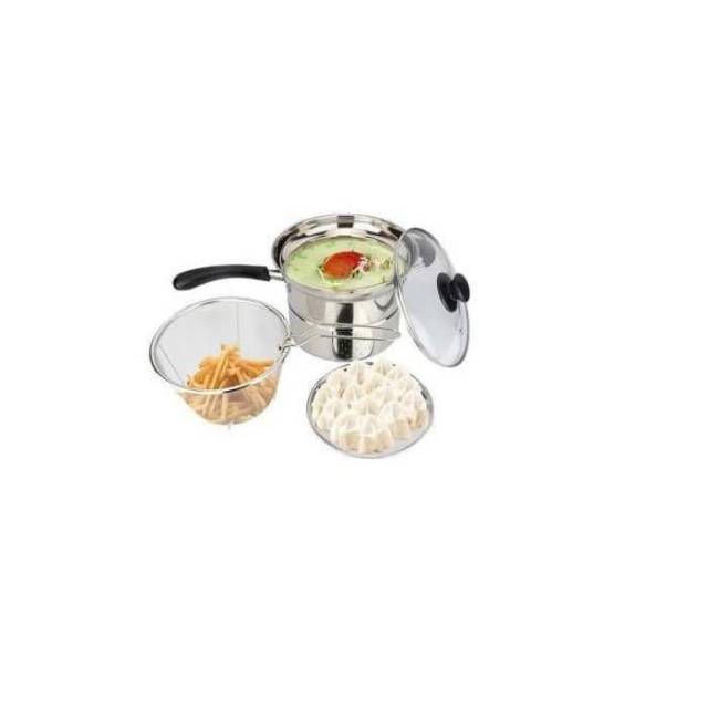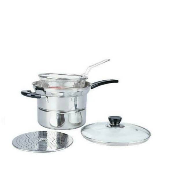 Panci Deep Fryer-Deepfry 3 in 1 - Panci kukus - Panci Penggorengan Serbaguna Tutup Kaca