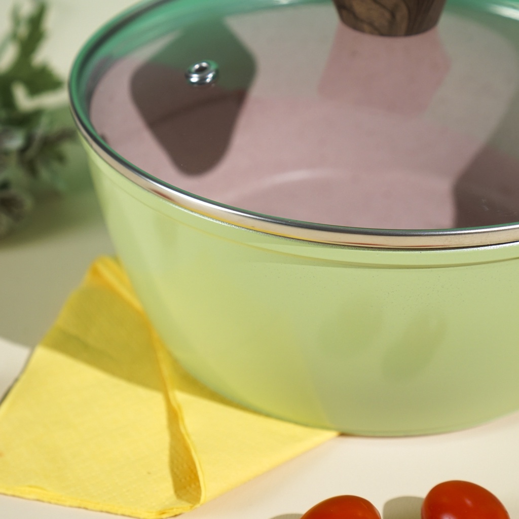 Panci Hijau Dengan Tutup Gagang Motif Kayu Cypruz Colour Series Green Sauce Pan 18 Cm