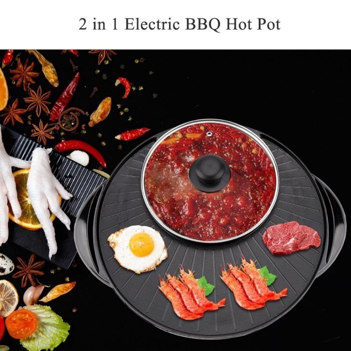 Panci Hotpot Shabu 2in1 Electric BBQ Listrik Pot Steam Elektrik Grill