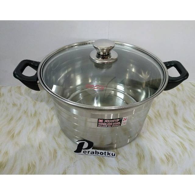 Panci Kuping Stenlis Stainless Steel + Tutup Kaca Tebal ROSH 24 Cm