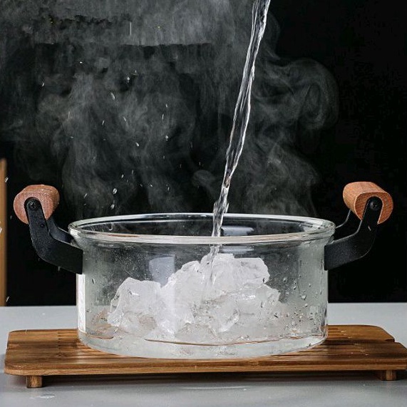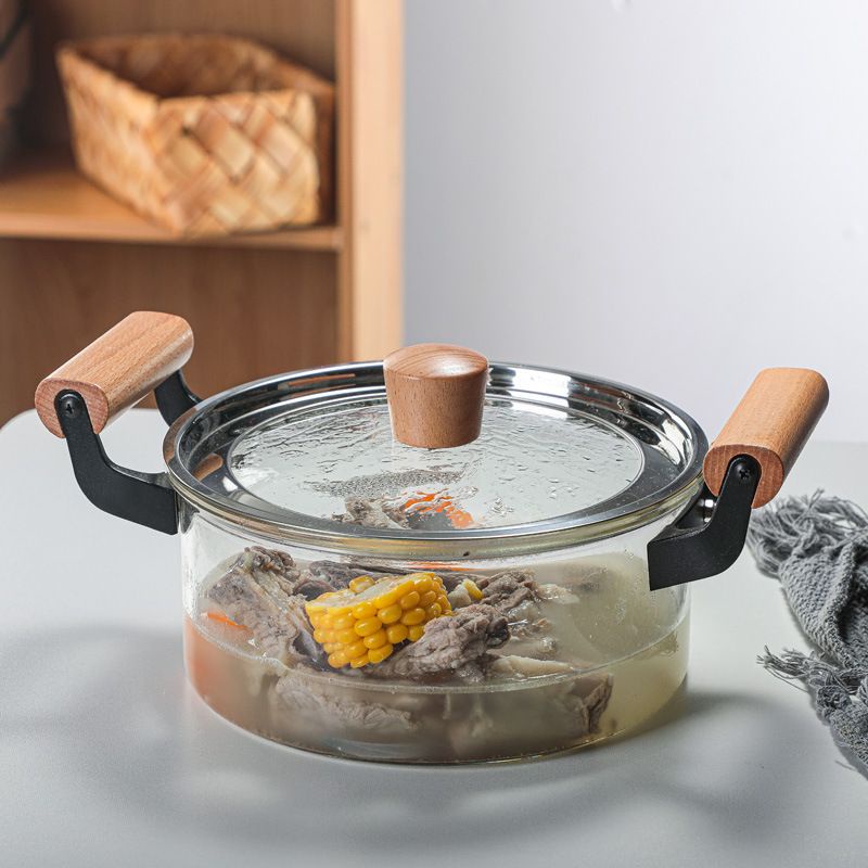 Panci Masak Kaca Gagang Kayu Tahan Panas Api Bisa Langsung Masak Diatas Kompor