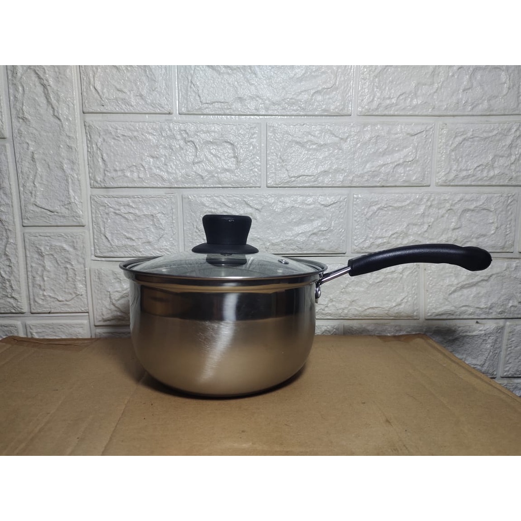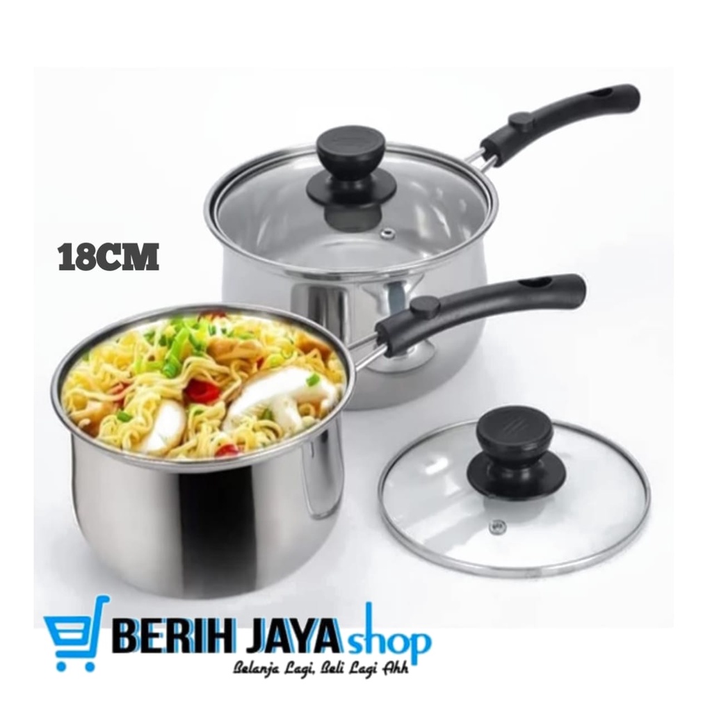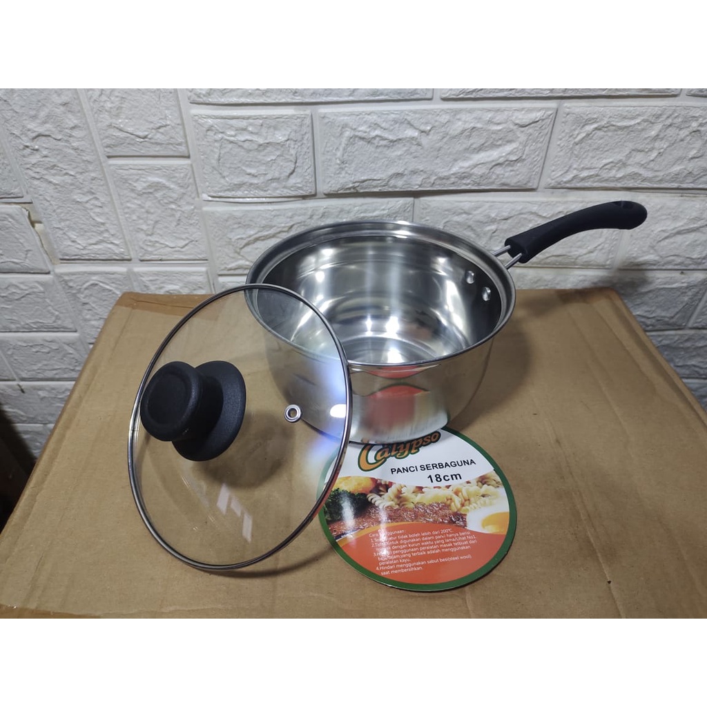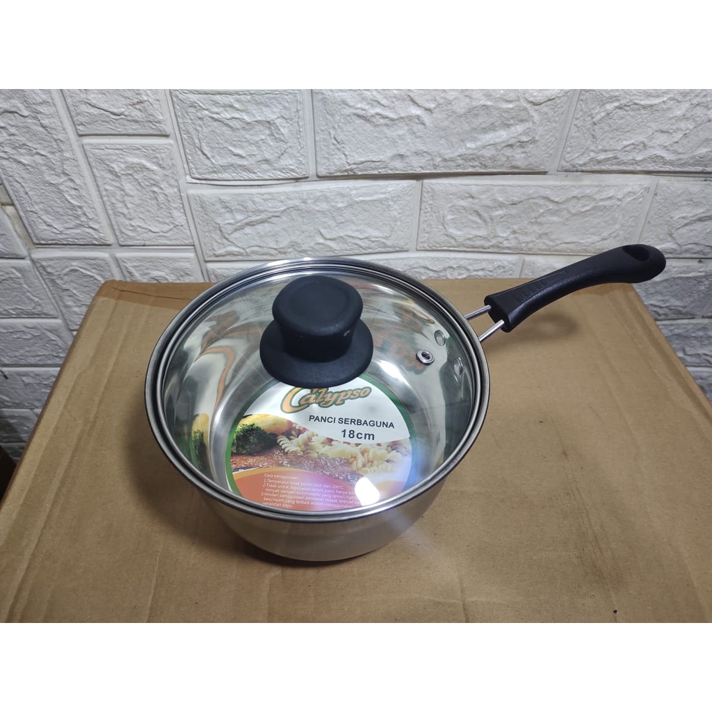 Panci Serbaguna Tutup Kaca Calypso Panci Gagang Masak Mie Indomie Stainless Steel - Panci Sayur - Panci Mie Rebus - Panci Susu