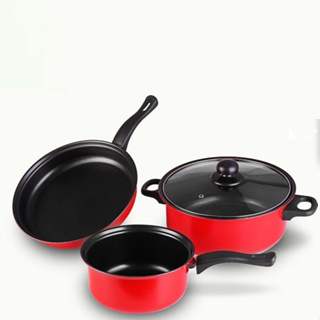 Panci Set 3 IN 1 Anti Lengket Panci Isi 3 Tutup Kaca Panci Set Pot - Penggorengan - Cookware Set Anti Lengket Multifungsi