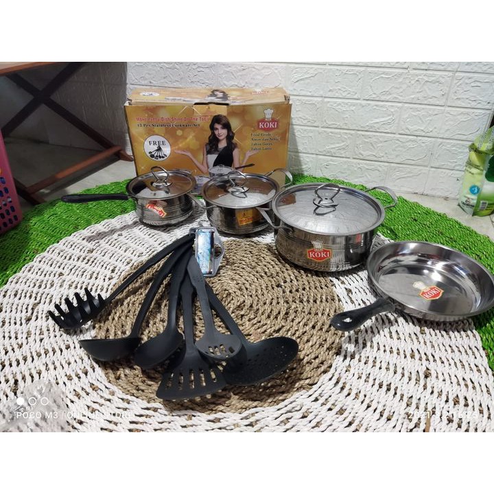 Panci Set Koki 13 Pcs Stainless Cookware Steel Teflon Spatula