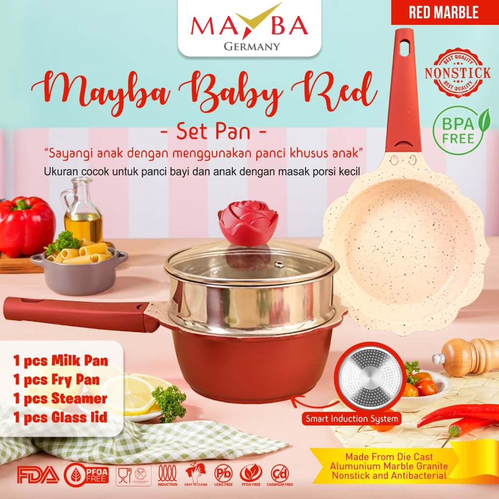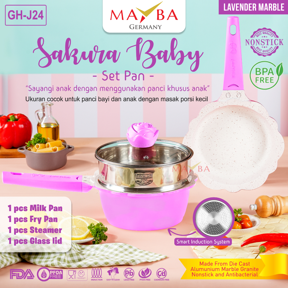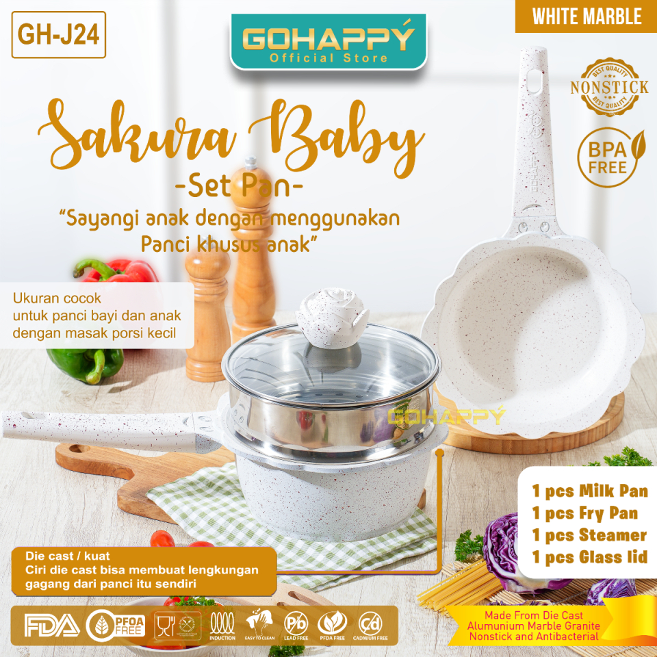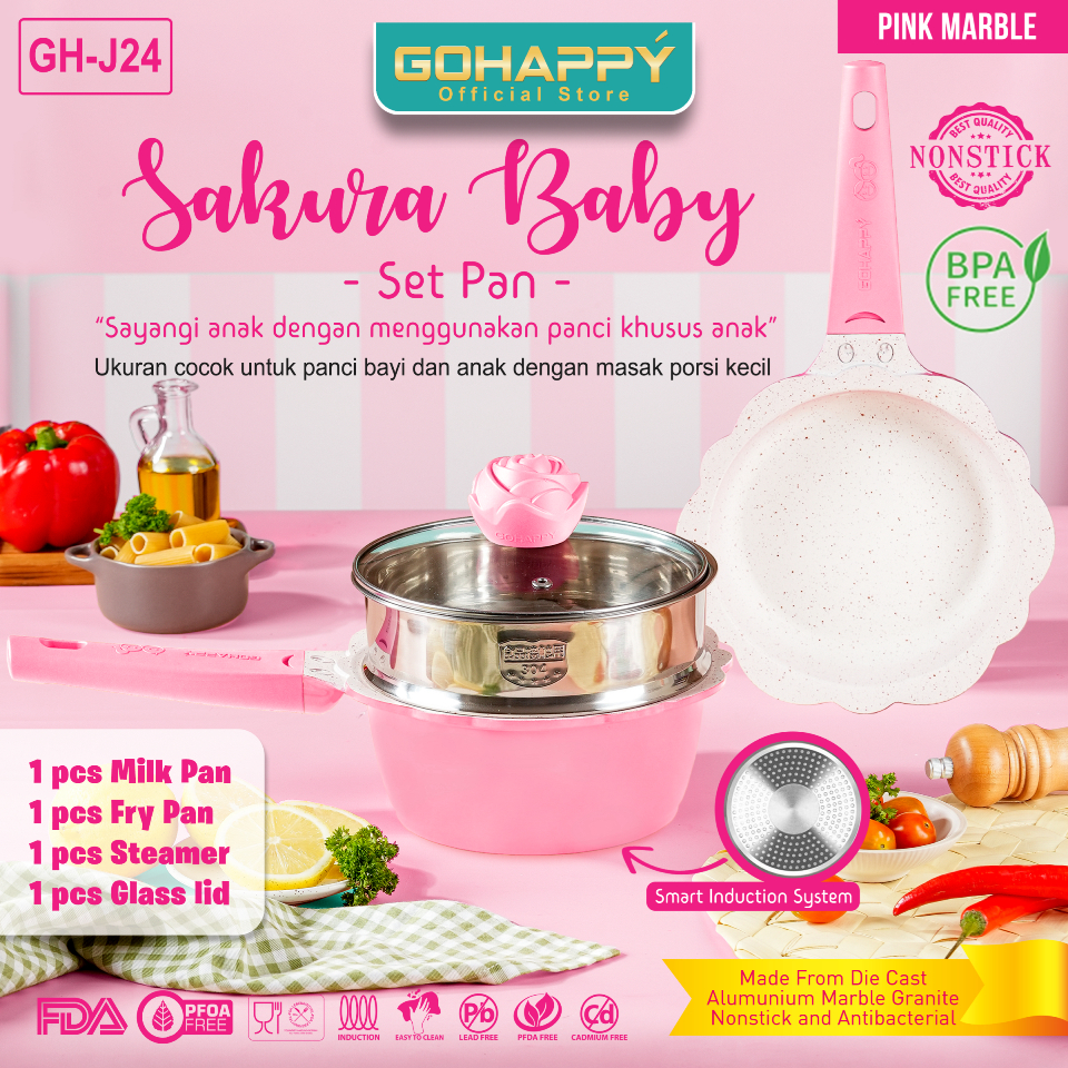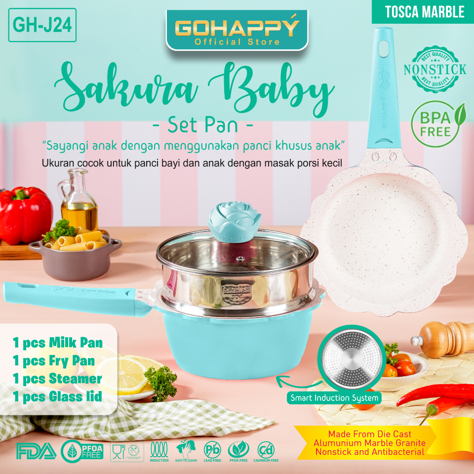 Panci Set Mpasi BABY SET FLOWER Gohappy Mayba ANTI LENGKET Tebal SAFE PFOA PTFE FREE