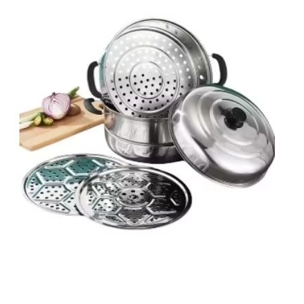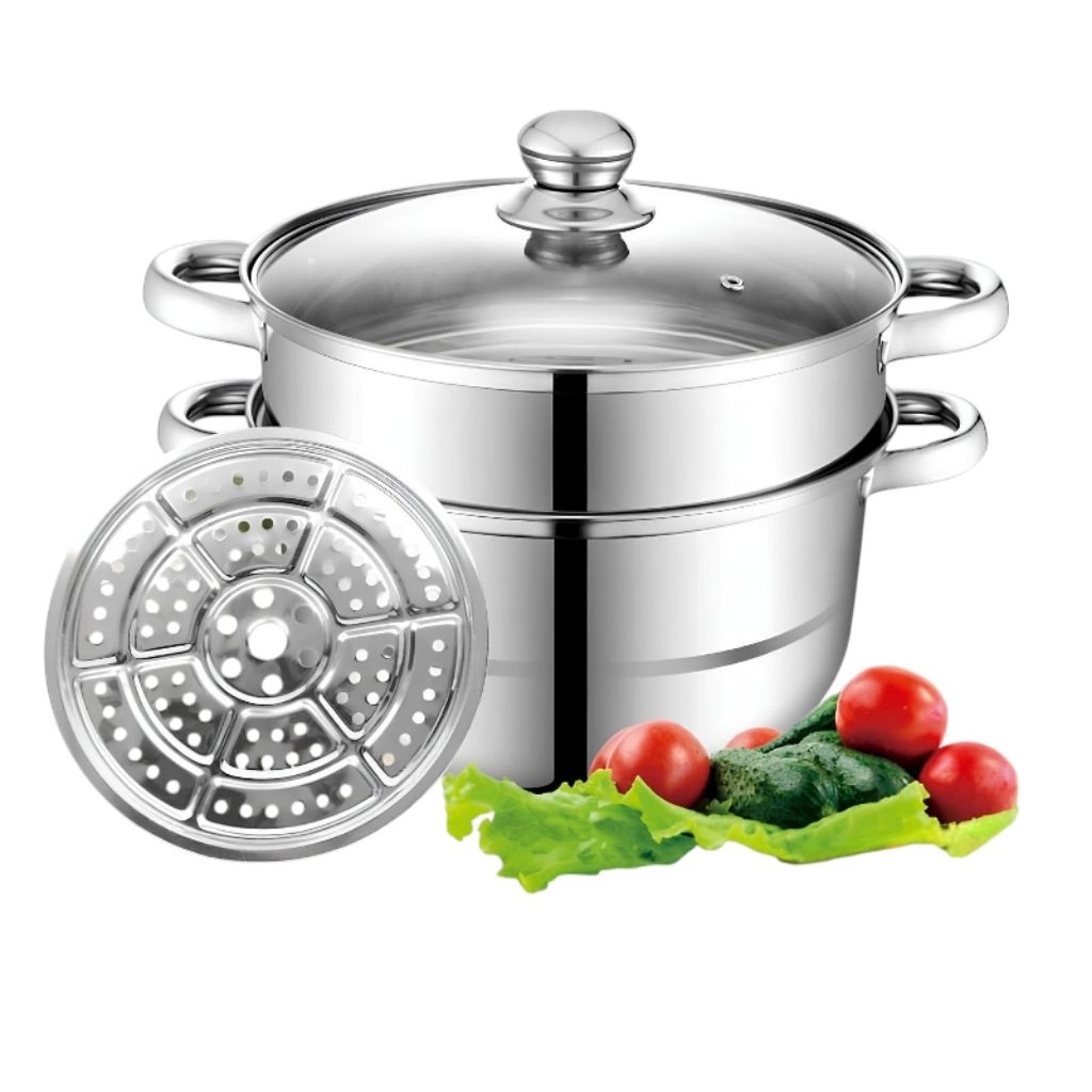 Panci Steamer Stainless Steel 3 Susun Panci Serbaguna Panci Kukus Steamer Tingkat Dimsum Kukusan