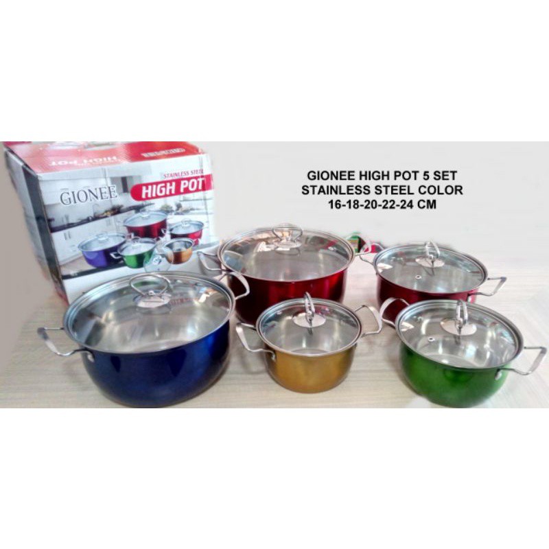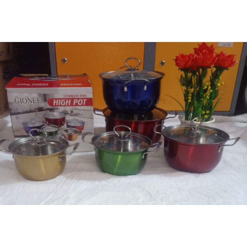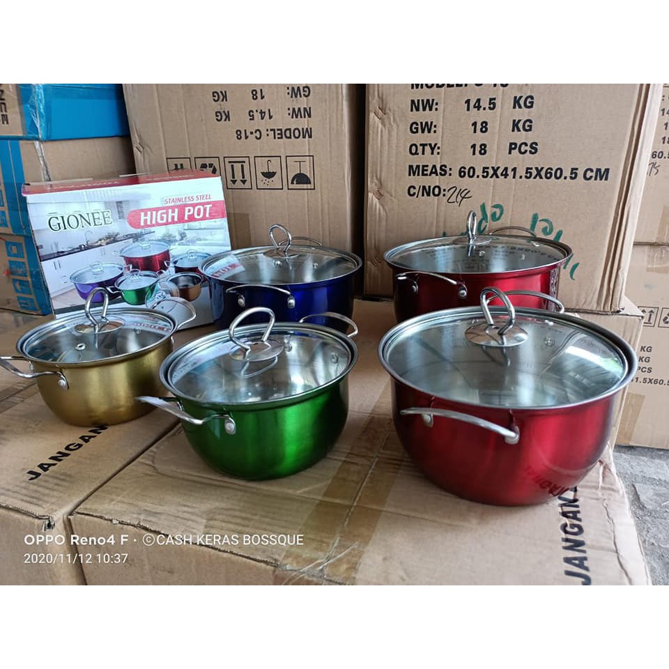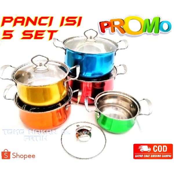 Panci Steamer set 5 susun tutup kaca - Panci Set Stainless Tebal isi 5 - Panci Set High Pot WARNA - Panci dan Steamer Set Stainless Tebal ~THF